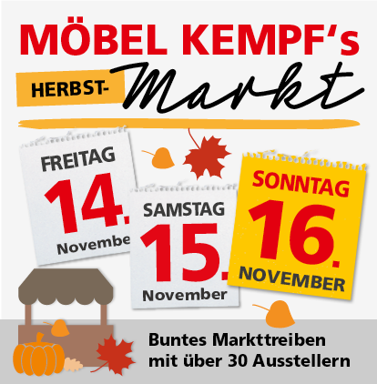 Am kommenden Wochenende findet unser Herbstmarkt in Aschaffenburg statt. Besuchen Sie uns vom 14. bis 16. November in unserem Möbelhaus und erleben Sie buntes Markttreiben mit vielen Highlights: