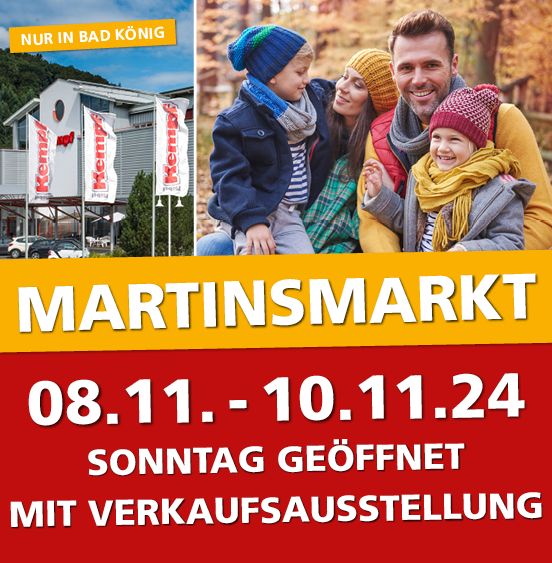 Auch dieses Jahr findet wieder unser bekannter Martinsmarkt in Bad König vom 08.-10.11. statt! Die ganze Woche über haben wir unseren Weihnachtsmarkt, exklusive Angebote, Gutscheine für Sie und ein Rahmenprogramm für Klein und Groß: