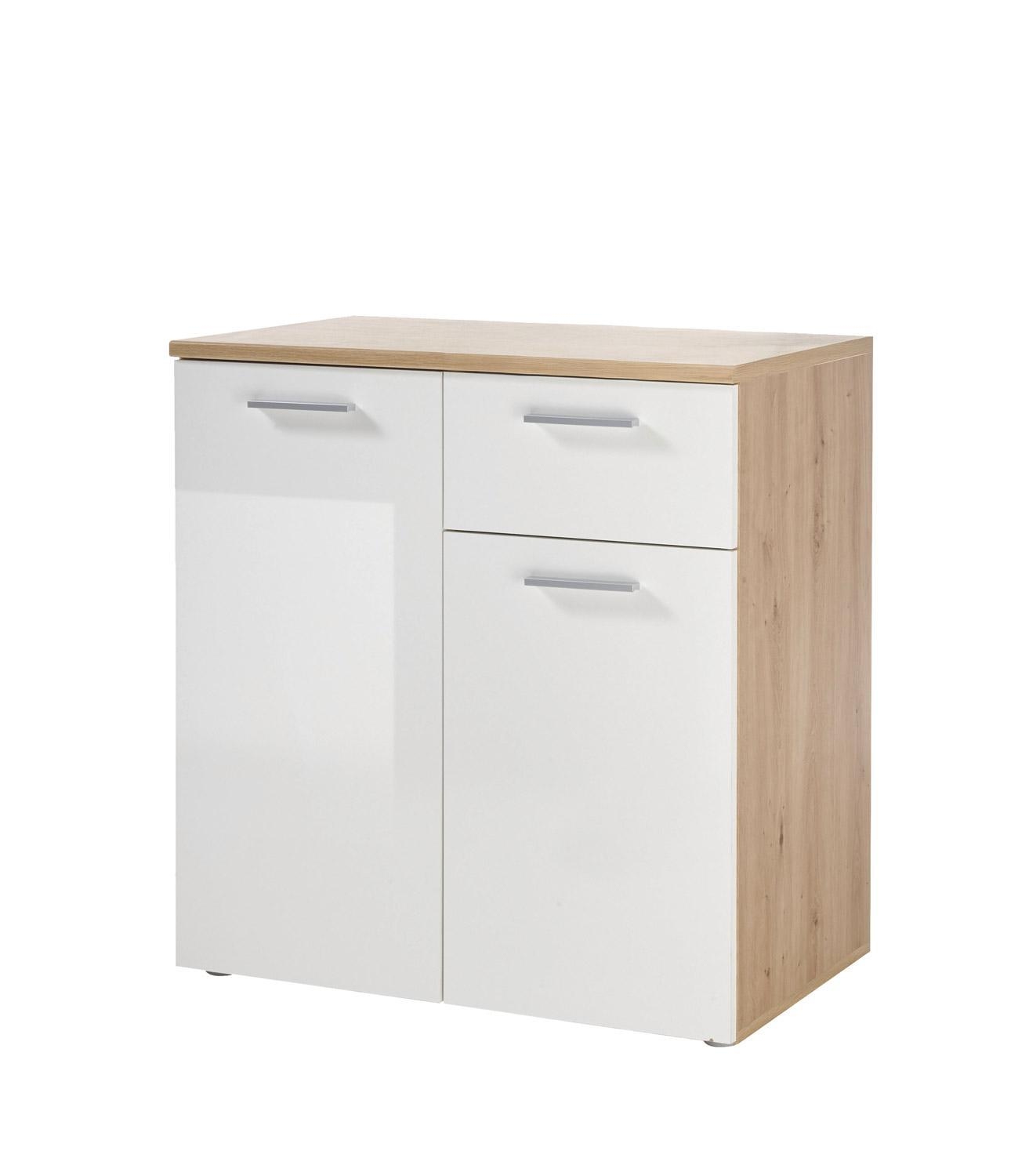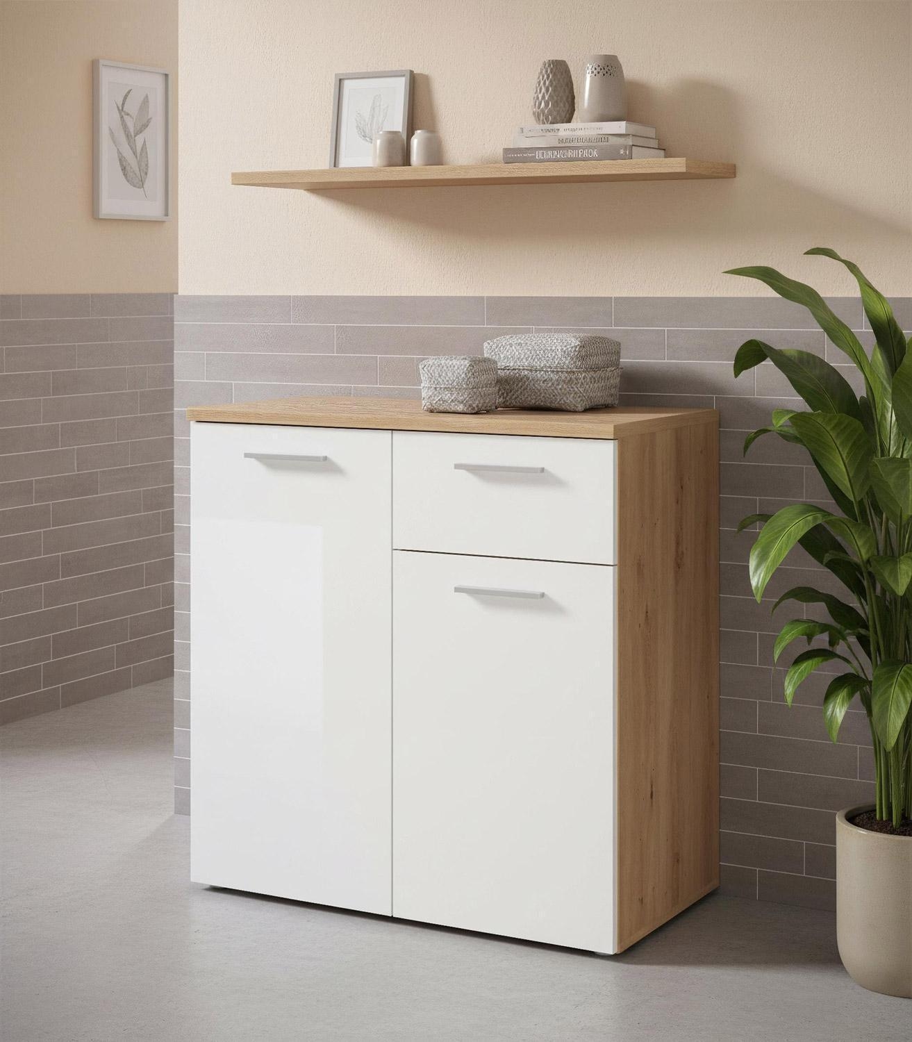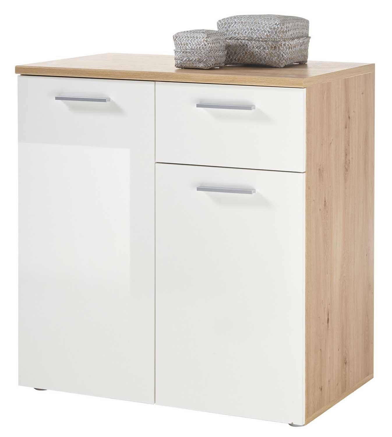 Weiß glänzend - Artisan Eiche Dekor - B 80 cm - 2 Türen - 1 Schublade