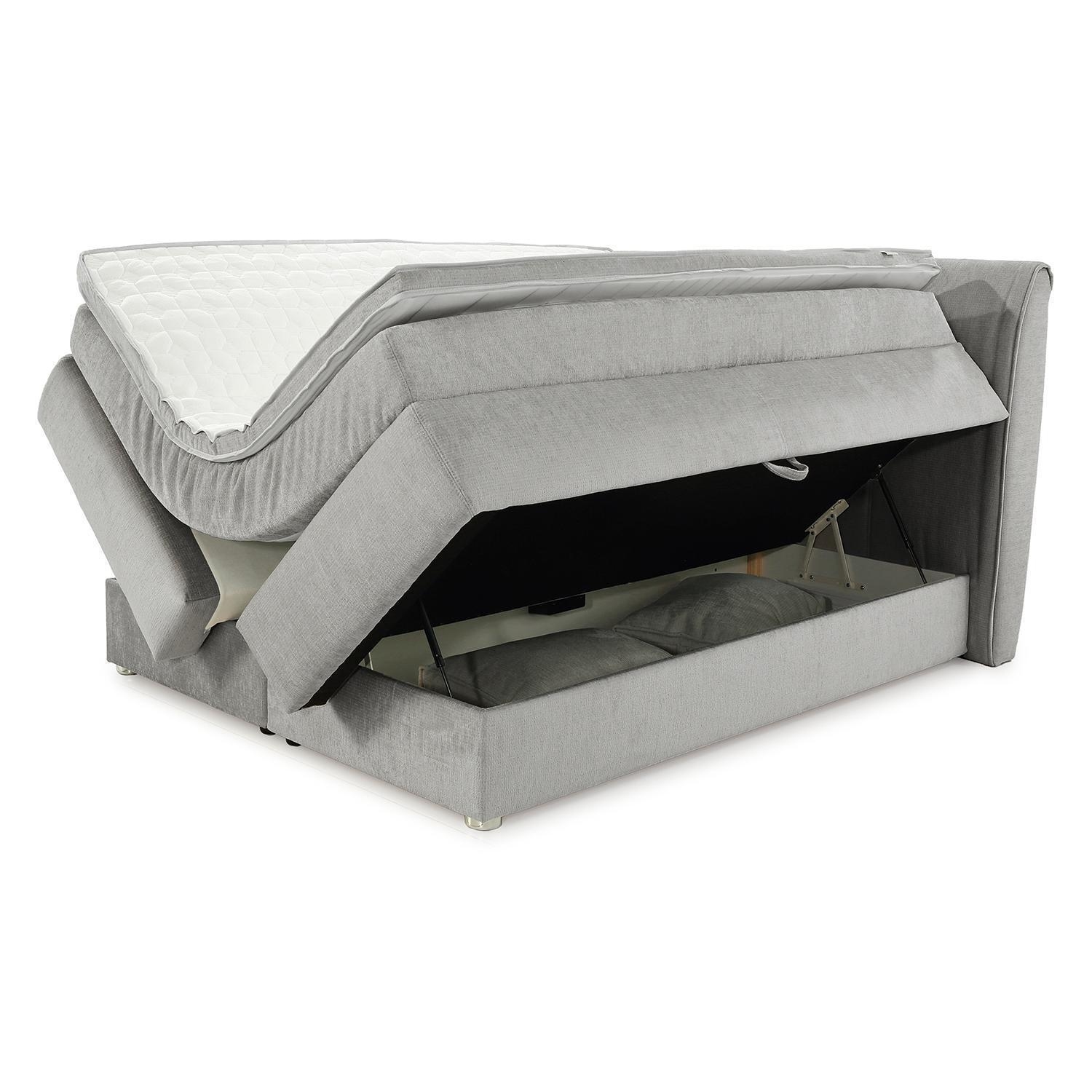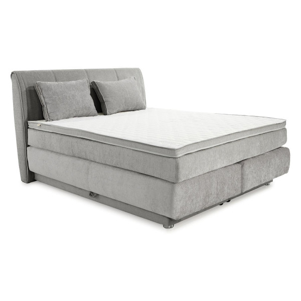 - Boxspringbett mit Webstoffbezug in Hellgrau