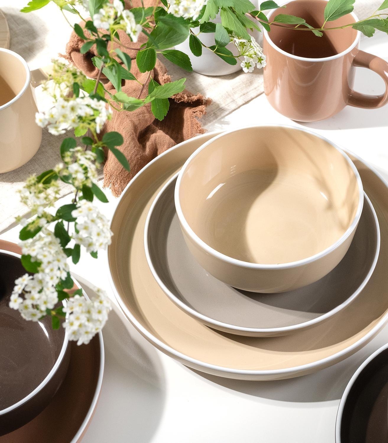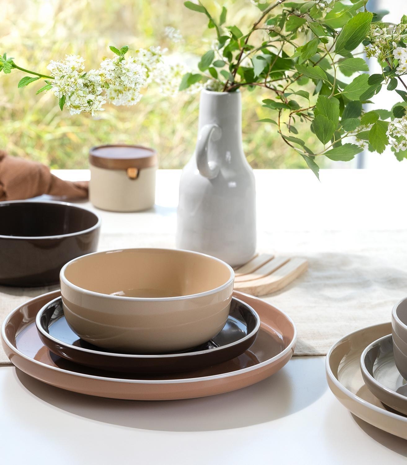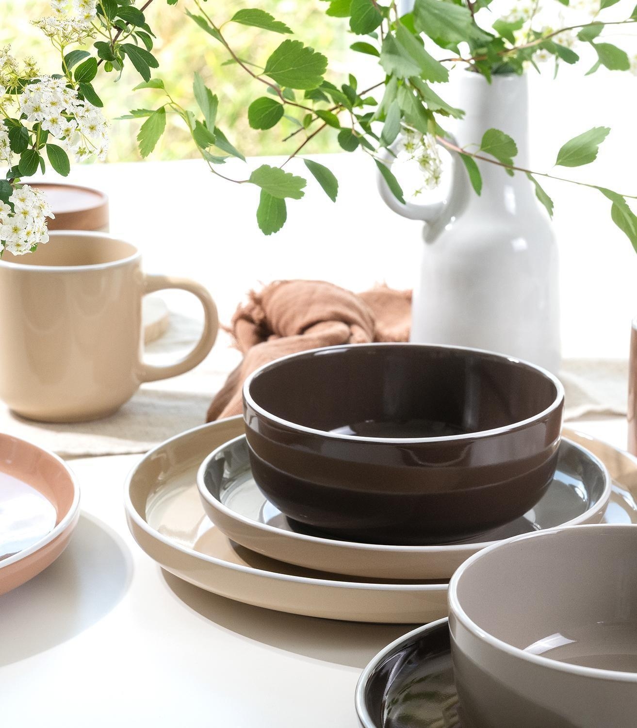 Das NORDIC MOCHA MOUSSE Kombiservice von Creatable bringt mit seinem Mix aus Braun, Taupe, Creme und Beige eine warme, moderne Stimmung auf den Tisch. Das 16-teilige Set aus glänzendem Steinzeug ist für 4 Personen geeignet und wird durch einen weißen Rand stilvoll akzentuiert. Es ist sowohl spülmaschinen- als auch mikrowellengeeignet und damit perfekt für den täglichen Einsatz.