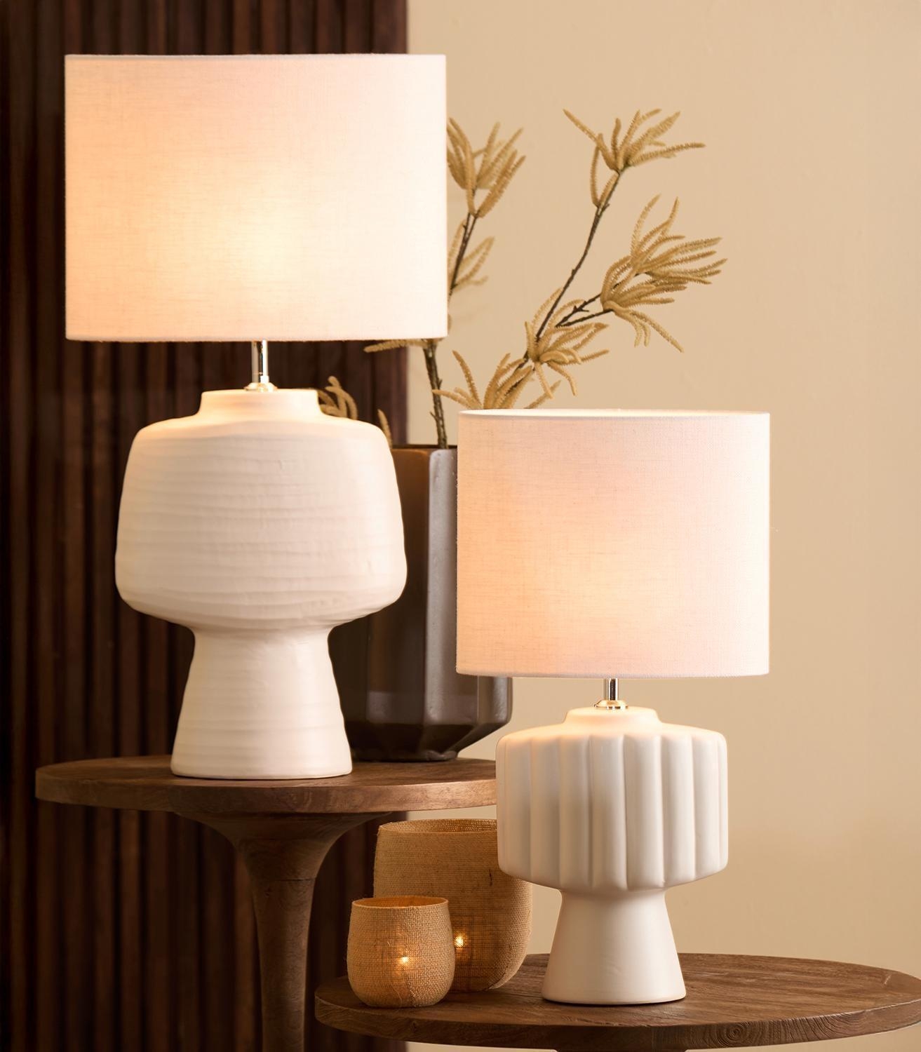 Der Lampenfuß GANDORO von der Marke Light & Living ist aus Keramik in mattem Creme gefertigt. Mit einer Breite von 29,5 cm, einer Höhe von 49 cm und einer Tiefe von 18,5 cm weist der Lampenfuß stattliche Abmessungen auf. Ausgestattet mit einem Schnurschalter, dient das Modell als Basis für eine Beleuchtungseinheit. Für den Betrieb wird ein einzelnes, austauschbares Leuchtmittel des Typs E27 benötigt, welches nicht im Lieferumfang enthalten ist. Der Lampenschirm muss separat erworben werden.