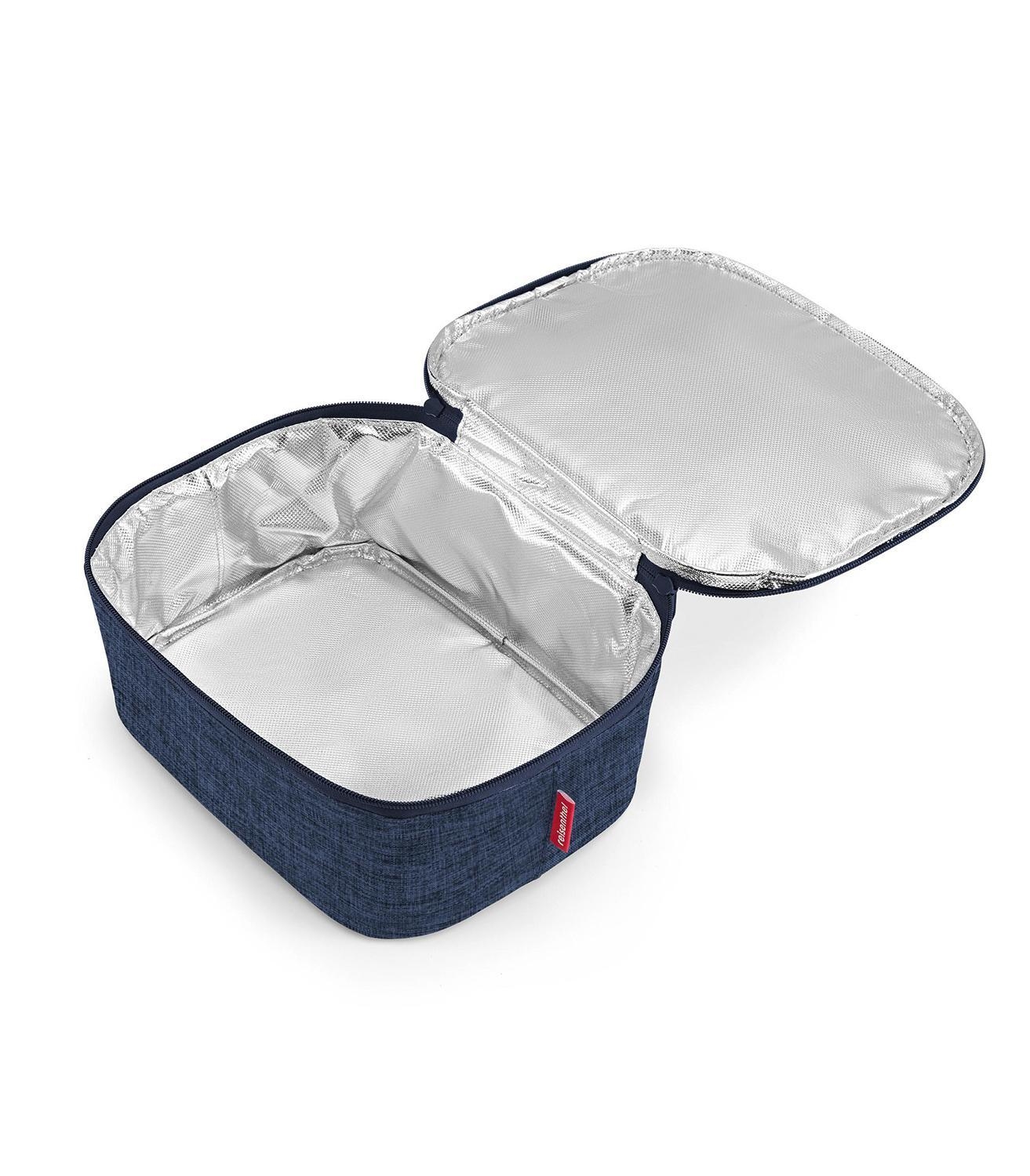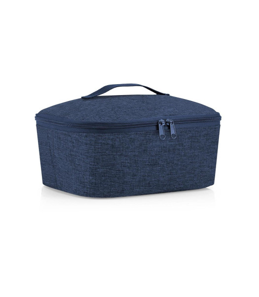 Die Kühltasche COOLERBAG M POCKET TWIST NAVY der Marke Reisenthel besteht aus blauem Polyestergewebe und weist ein Fassungsvermögen von 4,5 Litern auf. Das Modell ist mit einem vernähten Tragegriff sowie einem dichtschließenden Reißverschluss ausgestattet. Im Inneren verfügt die Tasche über eine Thermobeschichtung aus dicker Aluminiumfolie, die Lebensmittel länger kühl und frisch hält. Die Abmessungen betragen 28 cm in der Breite, 12 cm in der Höhe und 22,5 cm in der Tiefe. Zudem besitzt das Behältnis einen stabilen und widerstandsfähigen Taschenboden. Durch die Kombination aus Polyestergewebe und Aluminiumfolie ist diese Kühltasche für den Transport von Lebensmitteln konzipiert.