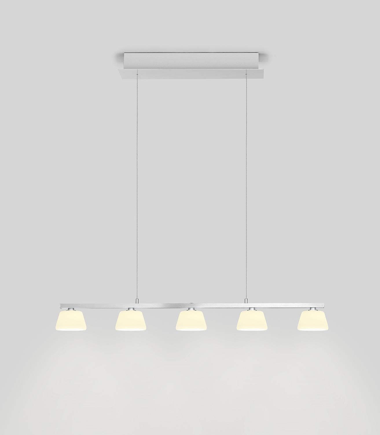 | Lieferumfang: | 1 höhenverstellbare Pendelleuchte mit 5 integrierten LED-Leuchtmitteln |