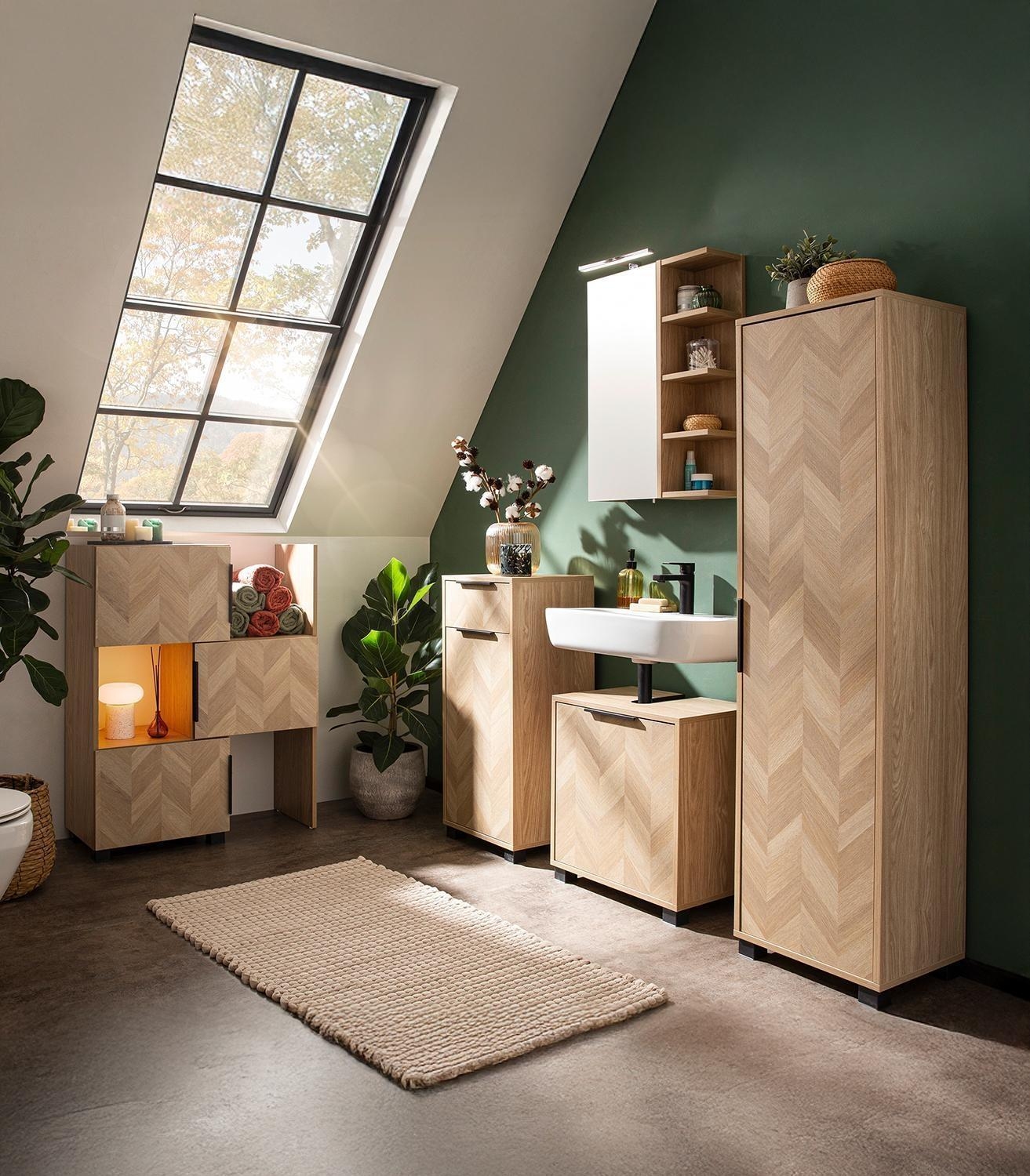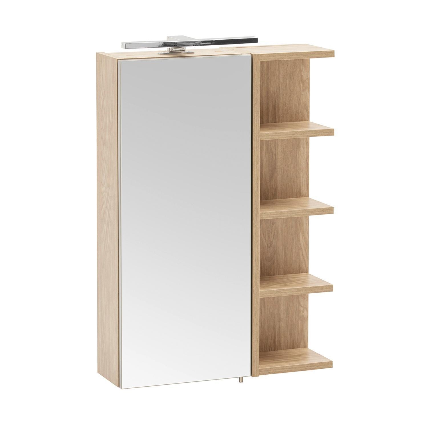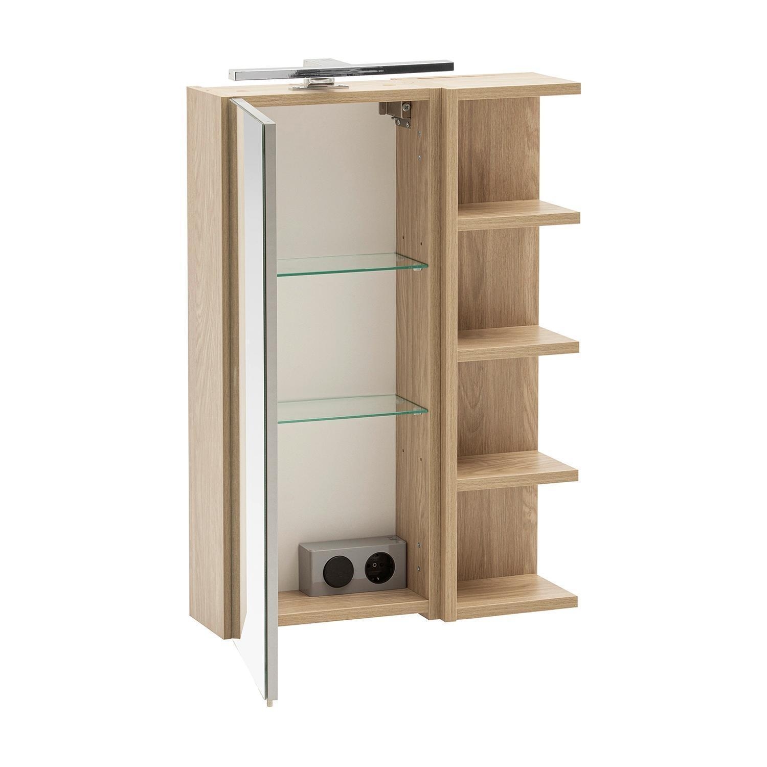 B 50 cm - 1 Tür - 4 Ablagefächer - Eiche Dekor - mit LED-Aufsatzleuchte