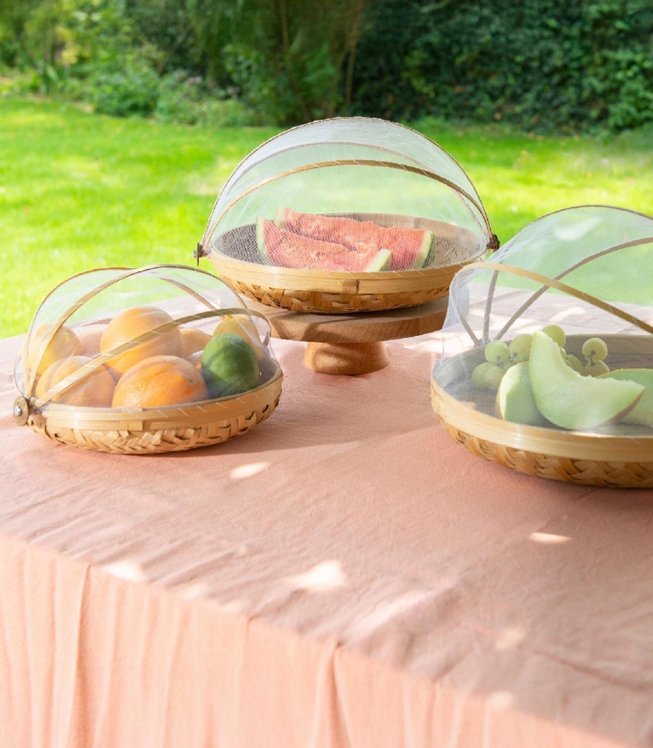 Die Abdeckhaube HIBBU mit passender Schale ist die ideale Lösung für stilvolles Servieren im Freien. Gefertigt aus Bambus, misst die Abdeckhaube 31 cm im Durchmesser und 8 cm in der Höhe. Die integrierte Fliegenhaube schützt Ihre Speisen zuverlässig vor Insekten und Staub, während die natürliche Optik für eine warme, einladende Atmosphäre sorgt. Perfekt für Gartenfeste, Picknicks oder das gemütliche Frühstück auf der Terrasse.