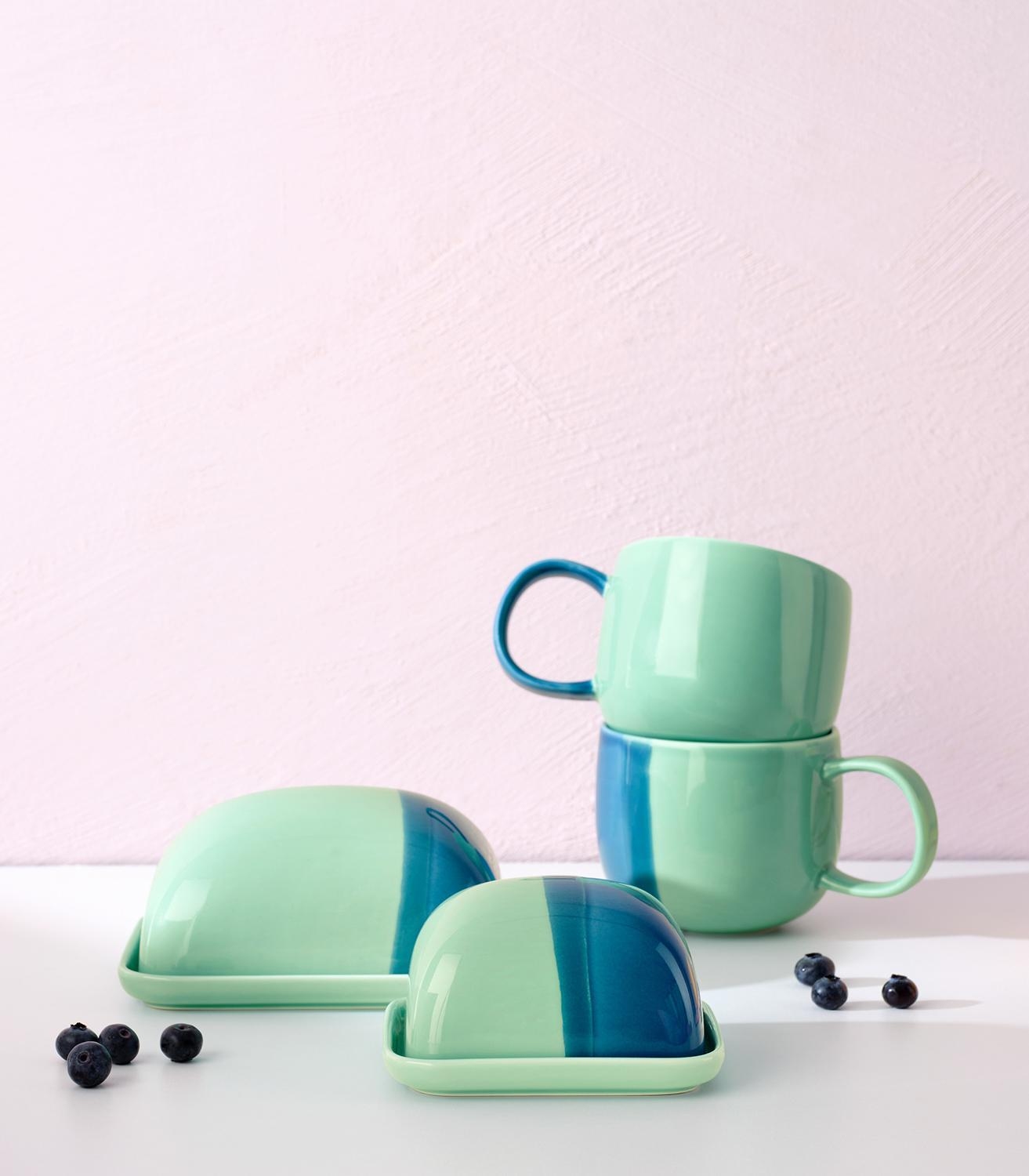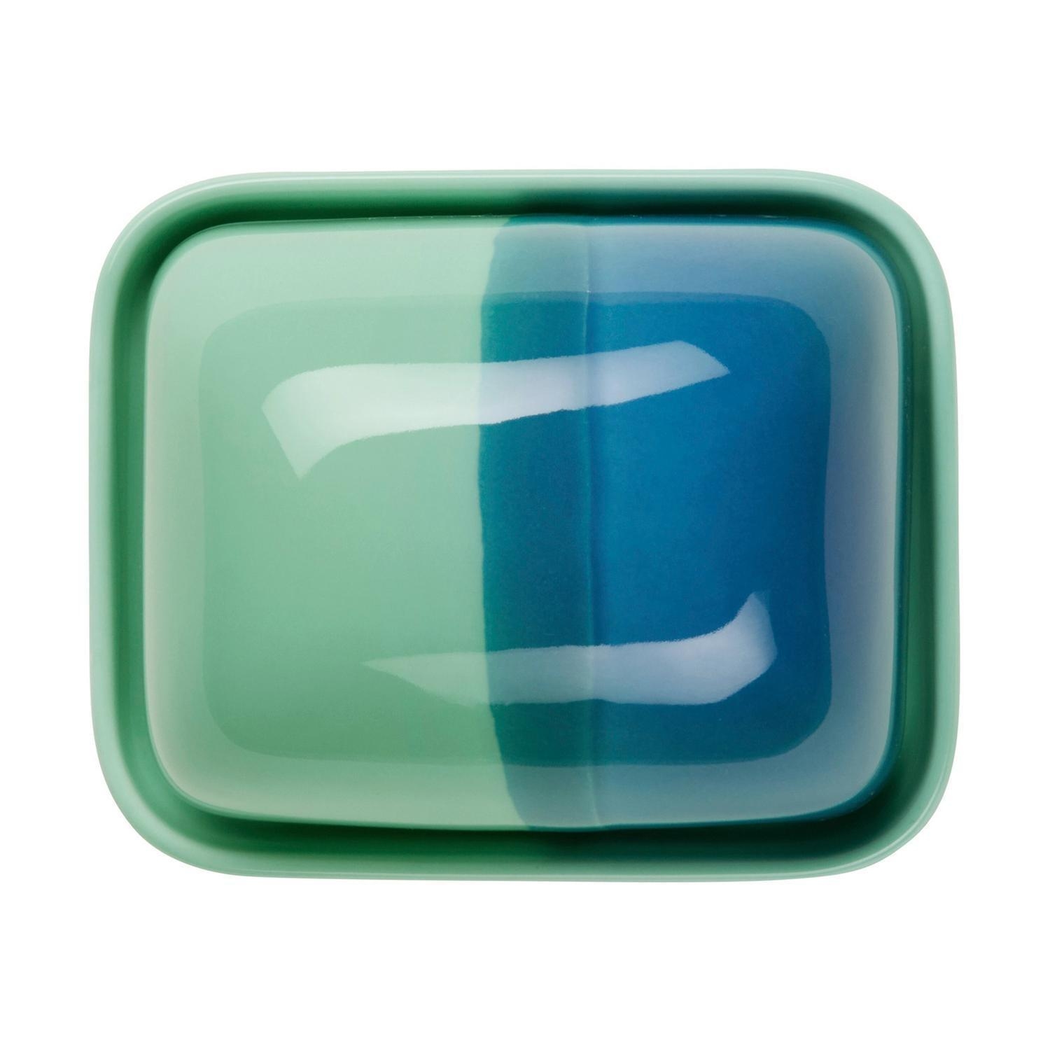 Die Butterdose JOY von ASA Selection bringt Farbe auf den Tisch. In Grün und Blau gestaltet, kombiniert sie modernes Design mit Funktionalität. Mit einer Breite von 11,5 cm, einer Tiefe von 9,5 cm und einer Höhe von 6 cm bietet sie Platz für ein handelsübliches Stück Butter. Gefertigt aus Porzellan, ist sie mikrowellen-, spülmaschinen-, backofen- und gefriergeeignet – ideal für den täglichen Gebrauch mit Stil.