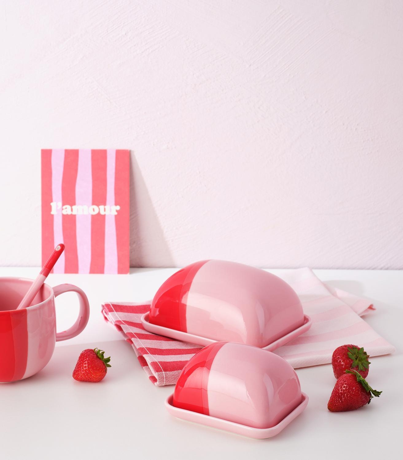 Die Butterdose JOY von ASA Selection bringt Farbe auf den Tisch. In Rosa und Rot gestaltet, kombiniert sie modernes Design mit Funktionalität. Mit einer Breite von 11,5 cm, einer Tiefe von 9,5 cm und einer Höhe von 6 cm bietet sie Platz für ein handelsübliches Stück Butter. Gefertigt aus Porzellan, ist sie mikrowellen-, spülmaschinen-, backofen- und gefriergeeignet – ideal für den täglichen Gebrauch mit Stil.