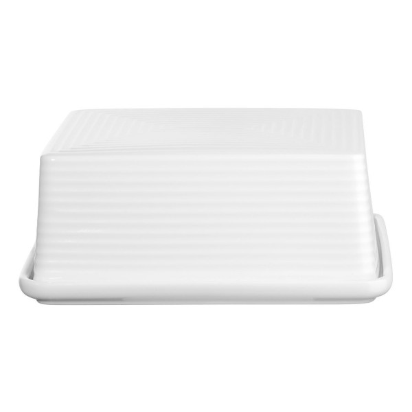 Die Butterdose KITCHEN'ART von ASA Selection präsentiert sich in stilvollem Weiß mit einer geriffelten Oberfläche und modernem Design. Gefertigt aus robustem Porzellan, misst sie 15,3 cm in der Breite, 11,6 cm in der Tiefe und 7 cm in der Höhe – ideal zum Aufbewahren und Servieren von Butter. Der passende Deckel schützt den Inhalt und hält ihn frisch. Die Butterdose ist spülmaschinengeeignet und überzeugt durch ihre pflegeleichte Handhabung – ein praktischer Blickfang auf jedem Tisch.