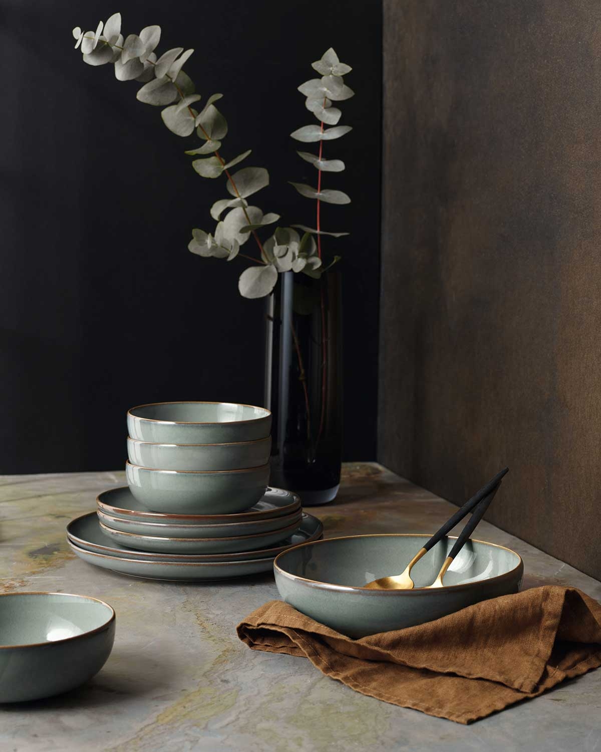 Durch Effektglasuren entstehen bei diesem Geschirr einzigartige Dekore, die jedes Teil zu einem Unikat machen. Diese gewollten Unregelmäßigkeiten und Unebenheiten, die während des Herstellungsprozesses entstehen, machen den besonderen Charme dieses Geschirrs aus. So gleicht kein Teil dem anderen.