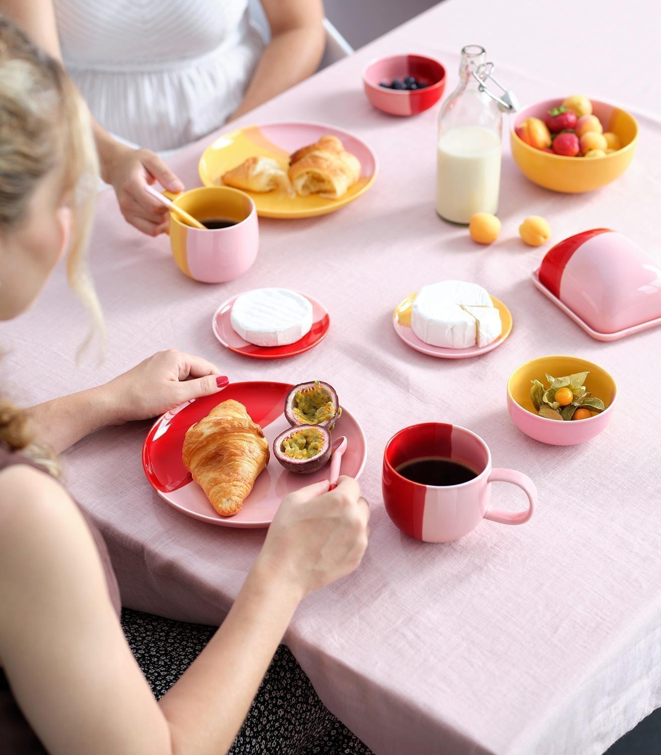 Die Espressotasse JOY von ASA Selection in Rosa und Rot bringt Farbe in den Alltag. Hergestellt aus hochwertigem Porzellan, fasst sie 90 ml und überzeugt durch ihre Vielseitigkeit: Sie ist gefrier-, backofen-, mikrowellen- und spülmaschinengeeignet. Mit einem Durchmesser von 6,2 und einer Höhe von 5 cm liegt sie angenehm in der Hand. Das zweifarbige Design macht sie zu einem stilvollen Begleiter für jede Espressopause.
