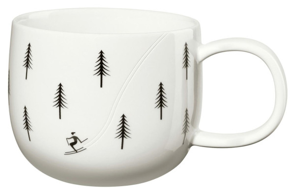 Die Kaffeetasse JOY von ASA Selection vereint Funktionalität mit Stil. Mit einer Kapazität von 400 ml bietet sie ausreichend Platz für Ihren Lieblingskaffee. Die weiße Keramik mit glänzender Oberfläche verleiht der Tasse eine edle Note. Das Design mit den schwarzen Skifahrern und Tannenbäumen, die Skispuren hinterlassen, bringt eine winterliche Atmosphäre auf den Frühstückstisch. Für eine langanhaltende Freude wird eine schonende Handwäsche empfohlen. Ideal für gemütliche Stunden nach einem Tag auf der Piste oder einfach zuhause.