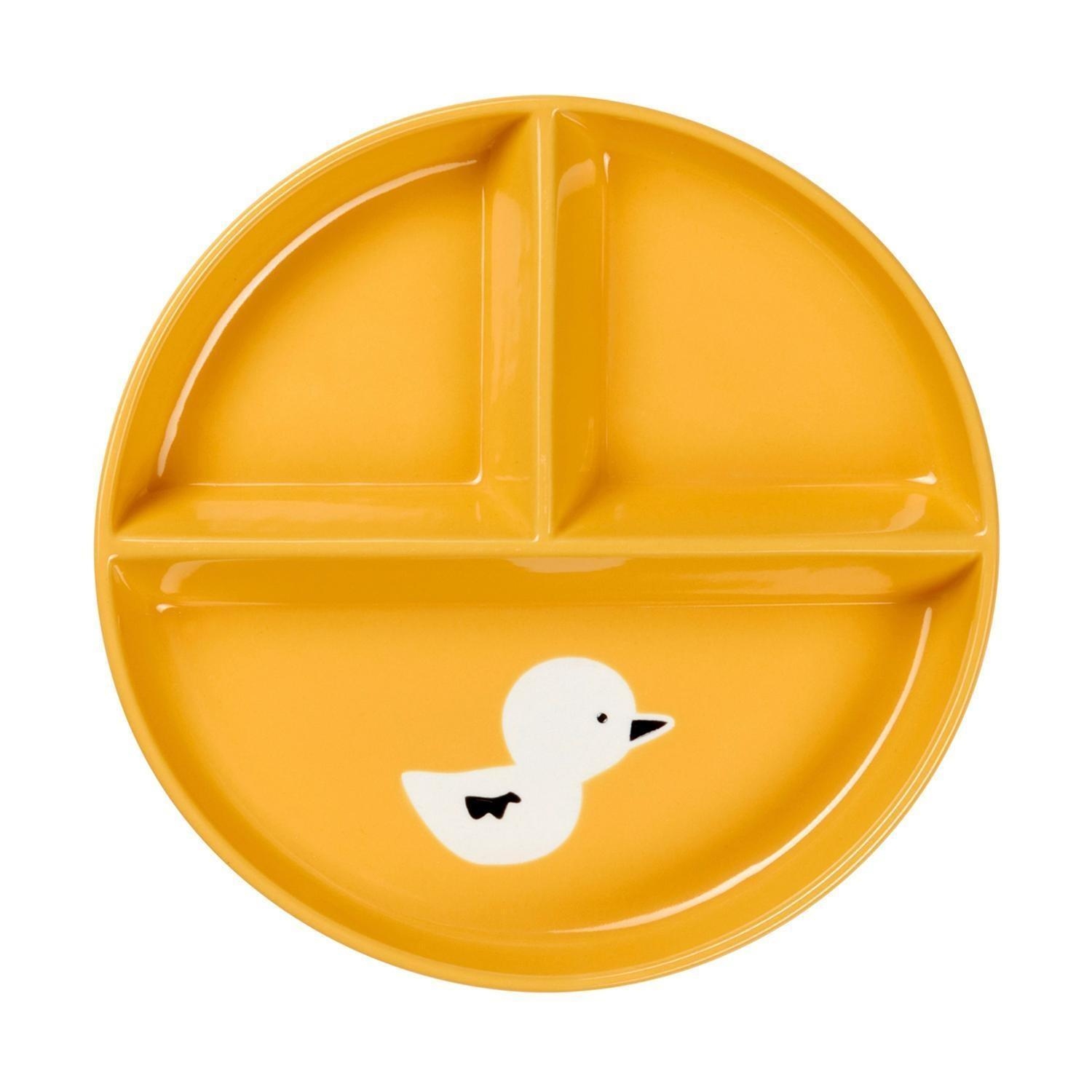 - Kinderteller in Gelb mit weißem Entenmotiv