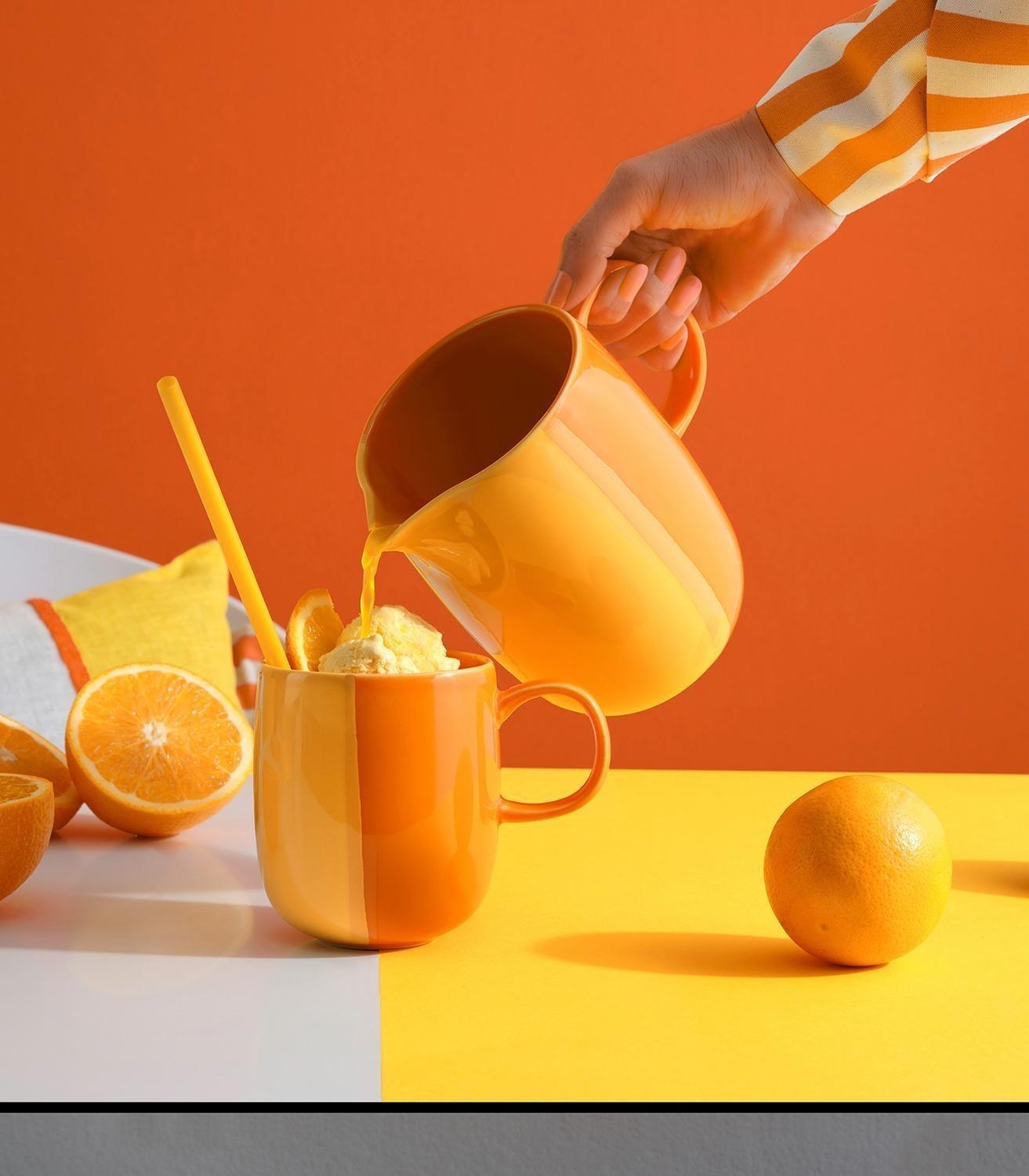 - Krug in Orange und Gelb