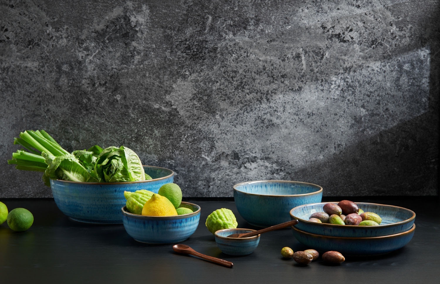 Durch Effektglasuren entstehen bei diesem Geschirr einzigartige Dekore, die jedes Teil zu einem Unikat machen. Diese gewollten Unregelmäßigkeiten und Unebenheiten, die während des Herstellungsprozesses entstehen, machen den besonderen Charme dieses Geschirrs aus. So gleicht kein Teil dem anderen.