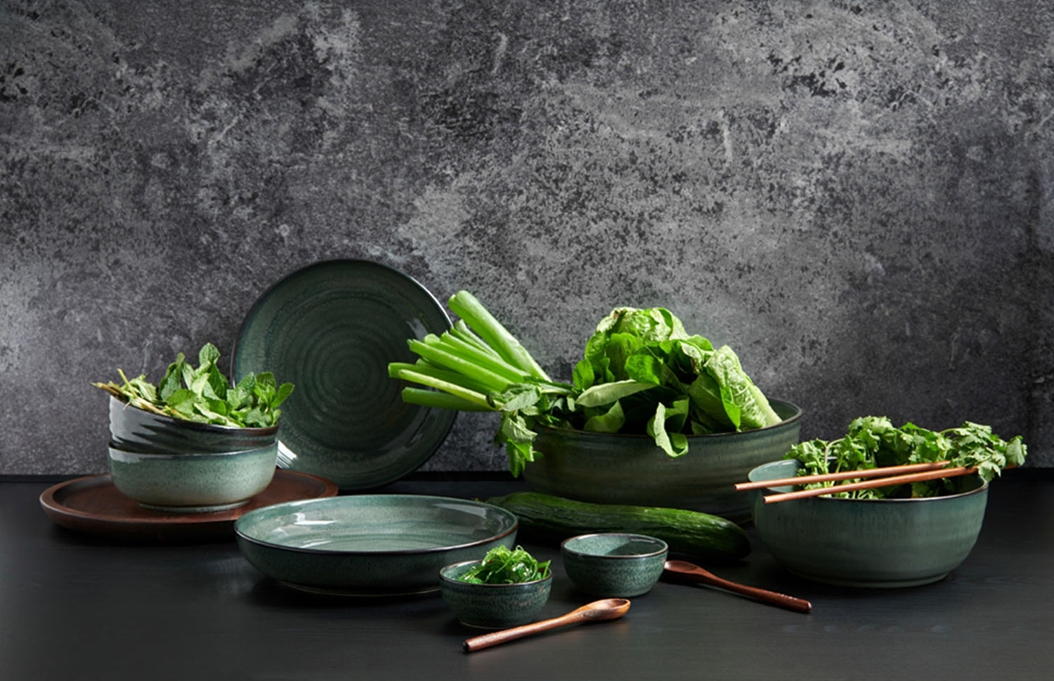 Durch Effektglasuren entstehen bei diesem Geschirr einzigartige Dekore, die jedes Teil zu einem Unikat machen. Diese gewollten Unregelmäßigkeiten und Unebenheiten, die während des Herstellungsprozesses entstehen, machen den besonderen Charme dieses Geschirrs aus. So gleicht kein Teil dem anderen.