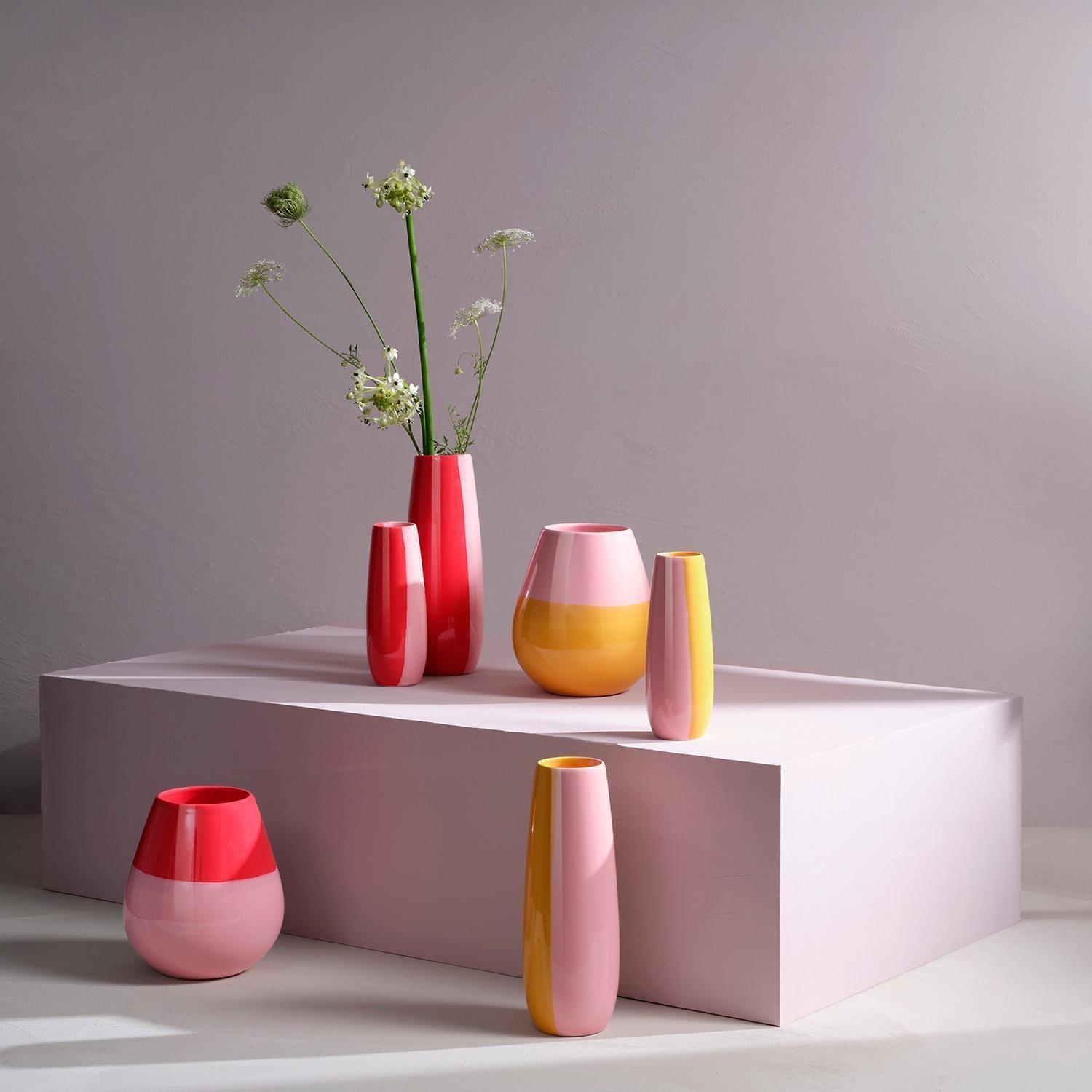 Die Vase EASE JOY von ASA Selection ist ein stilvolles Accessoire für jede Wohnraumdekoration. In strahlendem Rosa und Gelb und aus robustem Steinzeug gefertigt, ist sie wasserdicht und eignet sich perfekt für eine Vielzahl von Blumen, Pampasgras, Trockenpflanzen und mehr. Mit einem Durchmesser von 6 cm und einer Höhe von 25 cm ist sie ein eleganter Blickfang in jedem Raum.