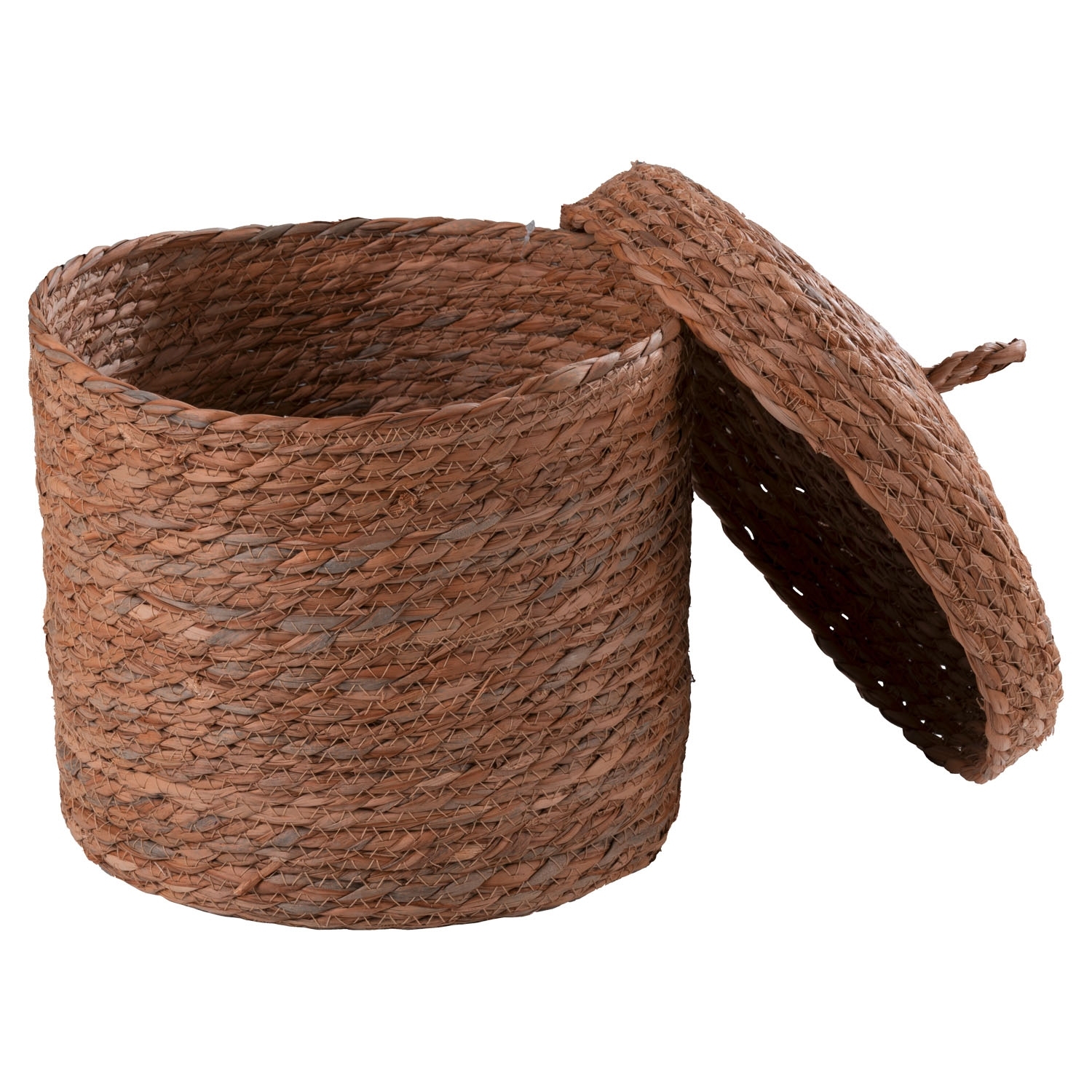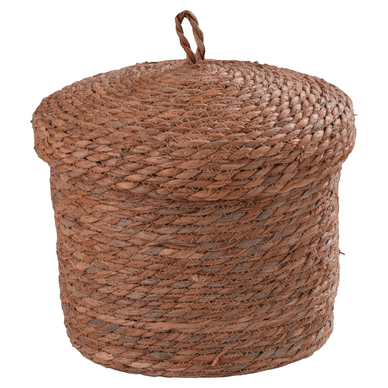 H 28 cm - Braun - Bastfaser - mit Deckel