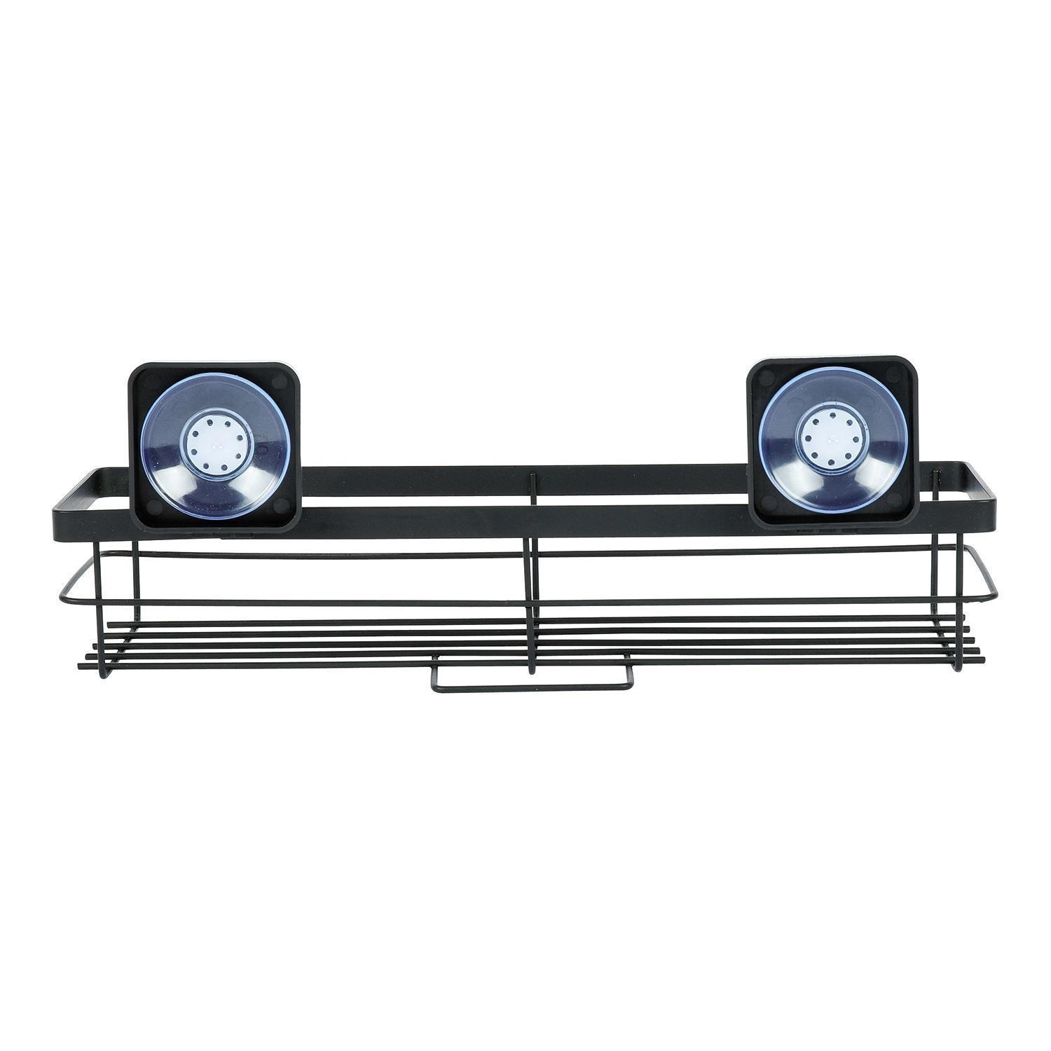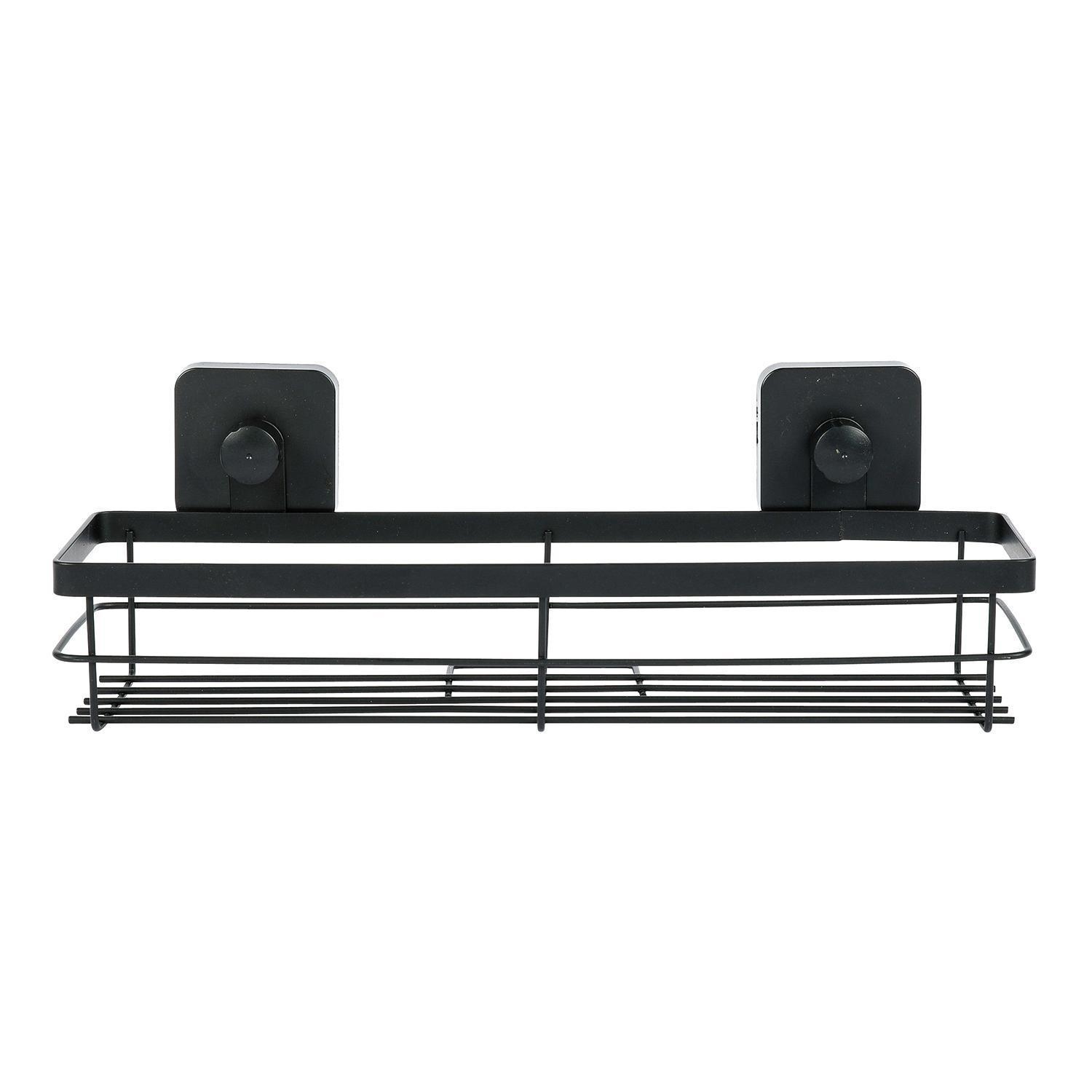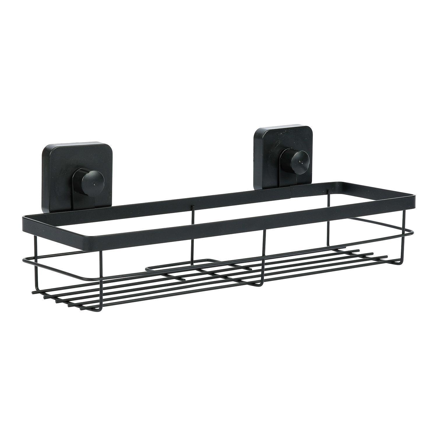 Das schwarze Bad Wandregal NERA bietet mit 34 x 12 cm aus pulverbeschichtetem Eisen und 1 Korb praktischen Stauraum im Badezimmer. Mit 2 Saugnäpfen lässt es sich einfach auf gerader und trockener Oberfläche aufhängen, ohne Bohren. Die Tragfähigkeit des Korbs beträgt 2 kg.