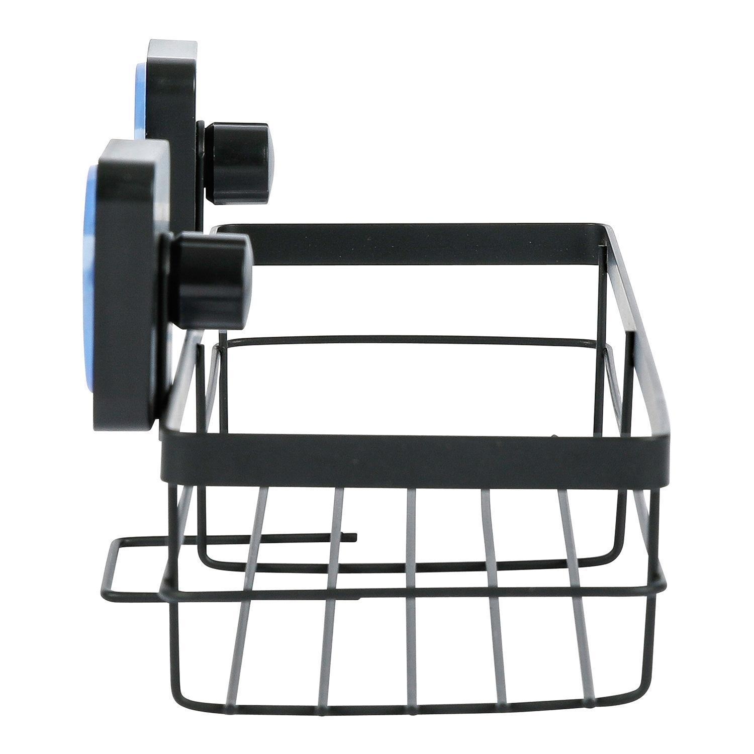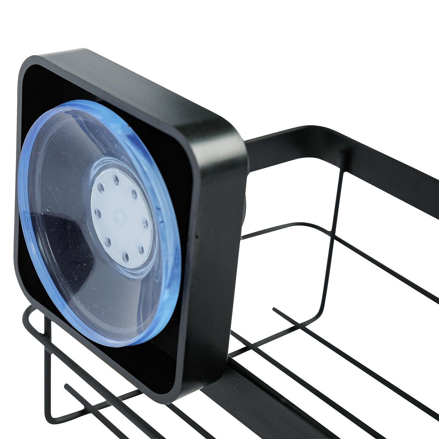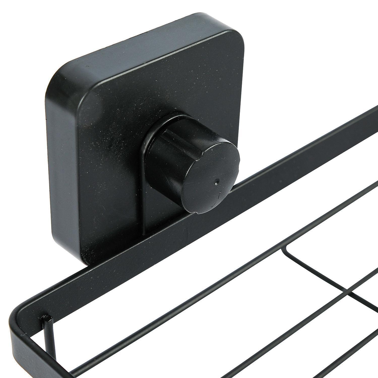 Das schwarze Bad Wandregal NERA bietet mit 34 x 12 cm aus pulverbeschichtetem Eisen und 1 Korb praktischen Stauraum im Badezimmer. Mit 2 Saugnäpfen lässt es sich einfach auf gerader und trockener Oberfläche aufhängen, ohne Bohren. Die Tragfähigkeit des Korbs beträgt 2 kg.
