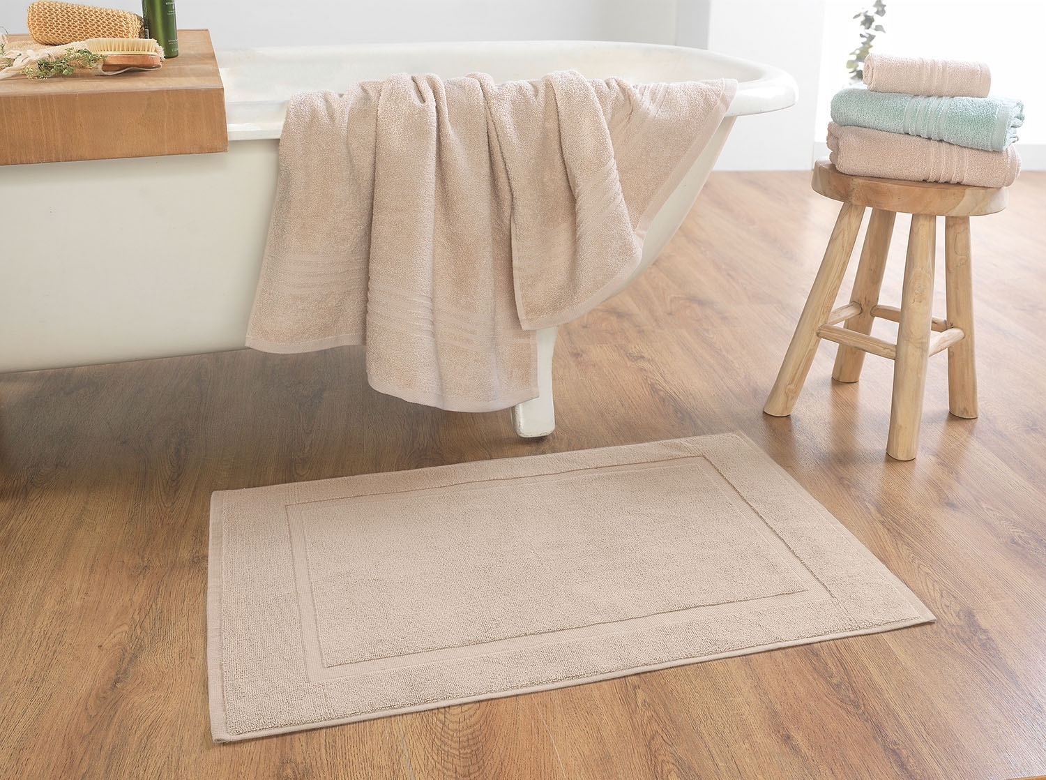 Die Badematte KIRA in Braungrau überzeugt durch ihr schlichtes Design und eine umlaufende Bordüre. Hergestellt aus Baumwolle mit einem Stoffgewicht von 700 g/m², bietet sie angenehmen Komfort und ist zudem äußerst pflegeleicht. Sie ist bis 60 °C waschbar und für den Trockner geeignet. Mit einer Länge von 80 cm und einer Breite von 50 cm passt sie perfekt in jedes Badezimmer und sorgt für ein gemütliches Ambiente.