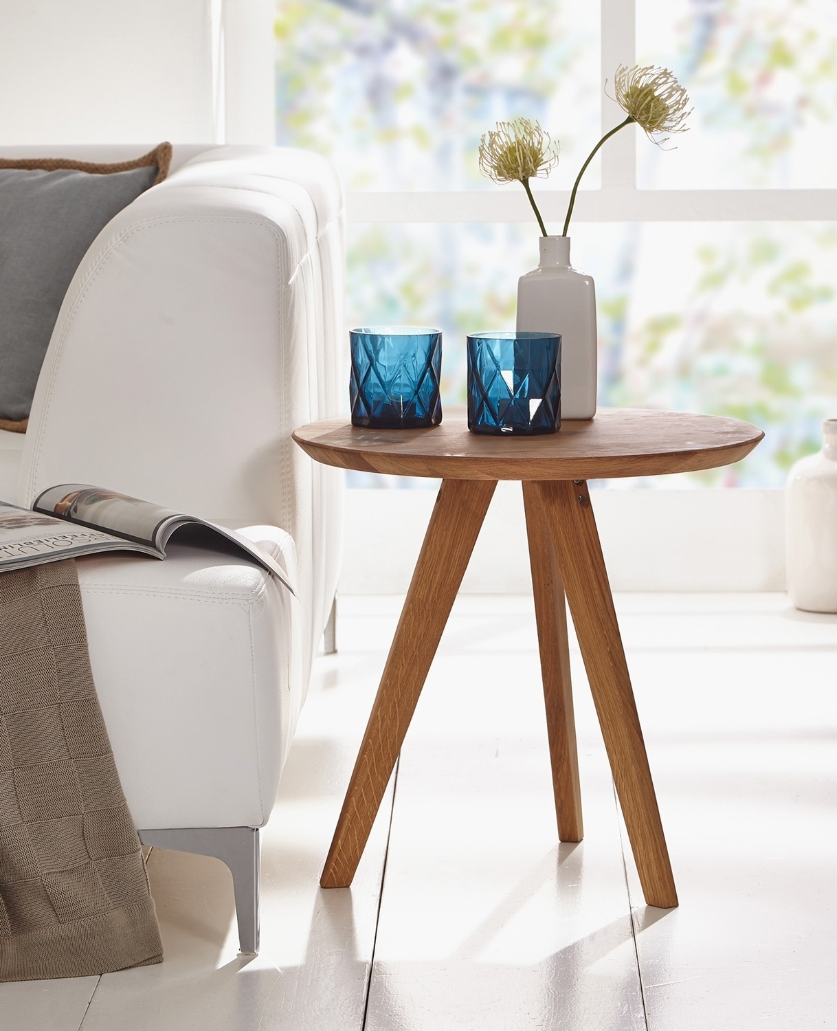 Der Beistelltisch ODINO von G + K bietet nicht nur Funktionalität, sondern auch Ästhetik. Hergestellt aus massivem Wildeichenholz und mit einer geölten Oberfläche versehen, strahlt er natürlichen Charme aus. Seine runde Ablagefläche mit einem Durchmesser von 50 cm bietet genügend Platz für Bücher, Getränke oder Dekoration. Mit einer Höhe von 47 cm ist er ideal als Beistelltisch neben dem Sofa oder als Blumenhocker geeignet.