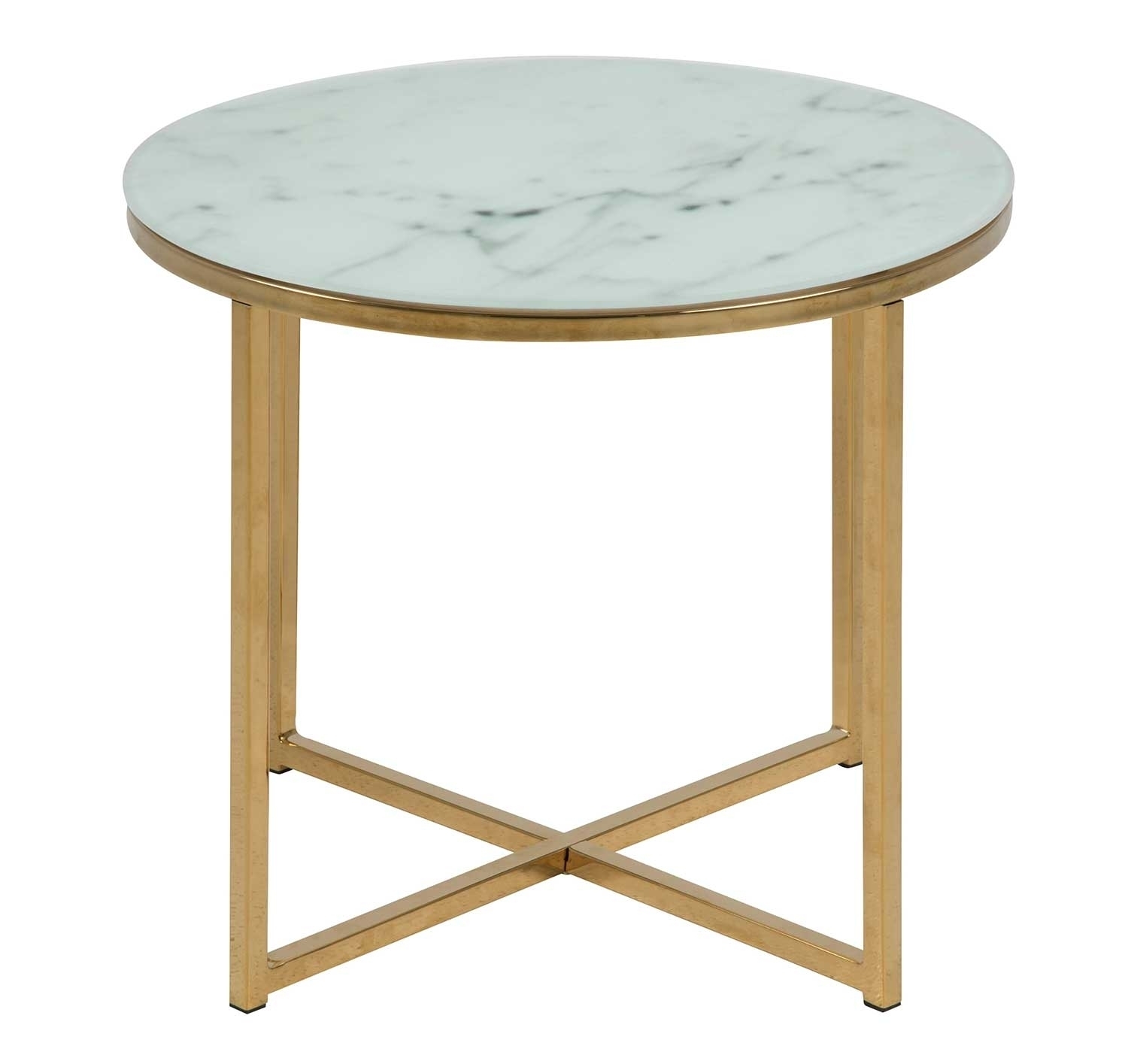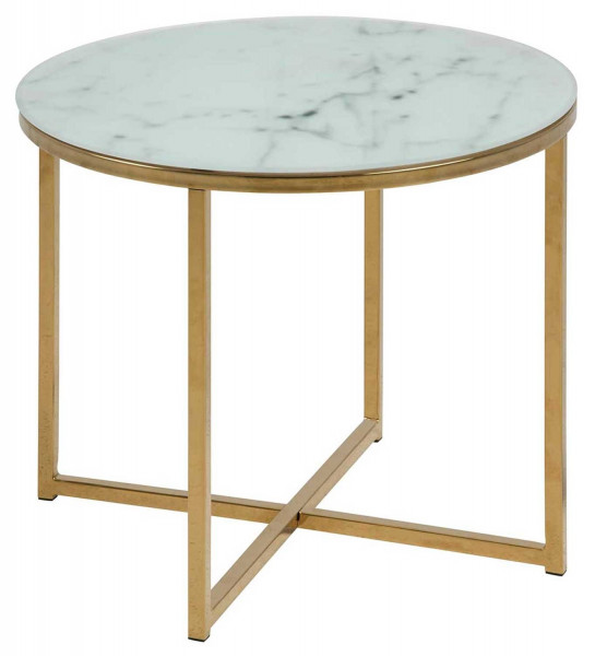 Weiß - Marmoroptik - Goldgelb - Ø 50 cm - Glas - Metall