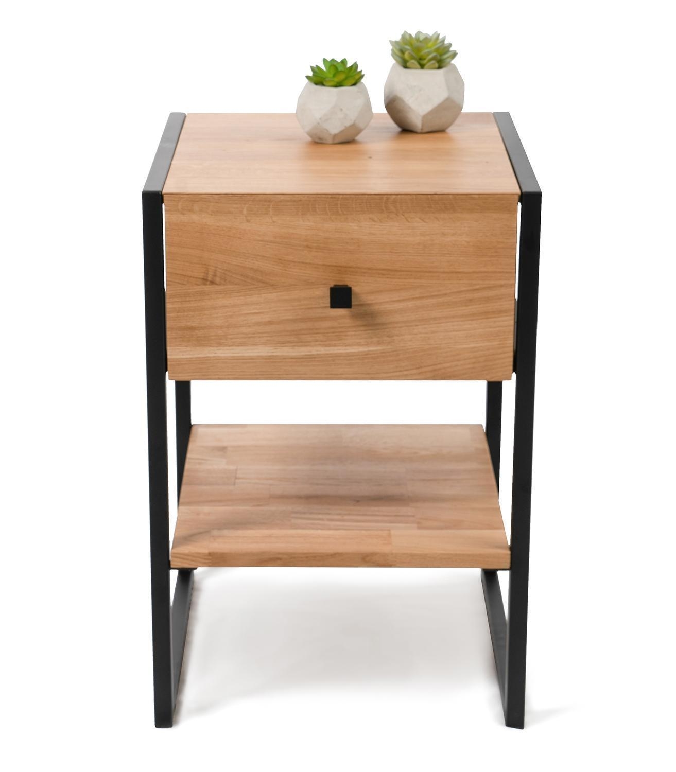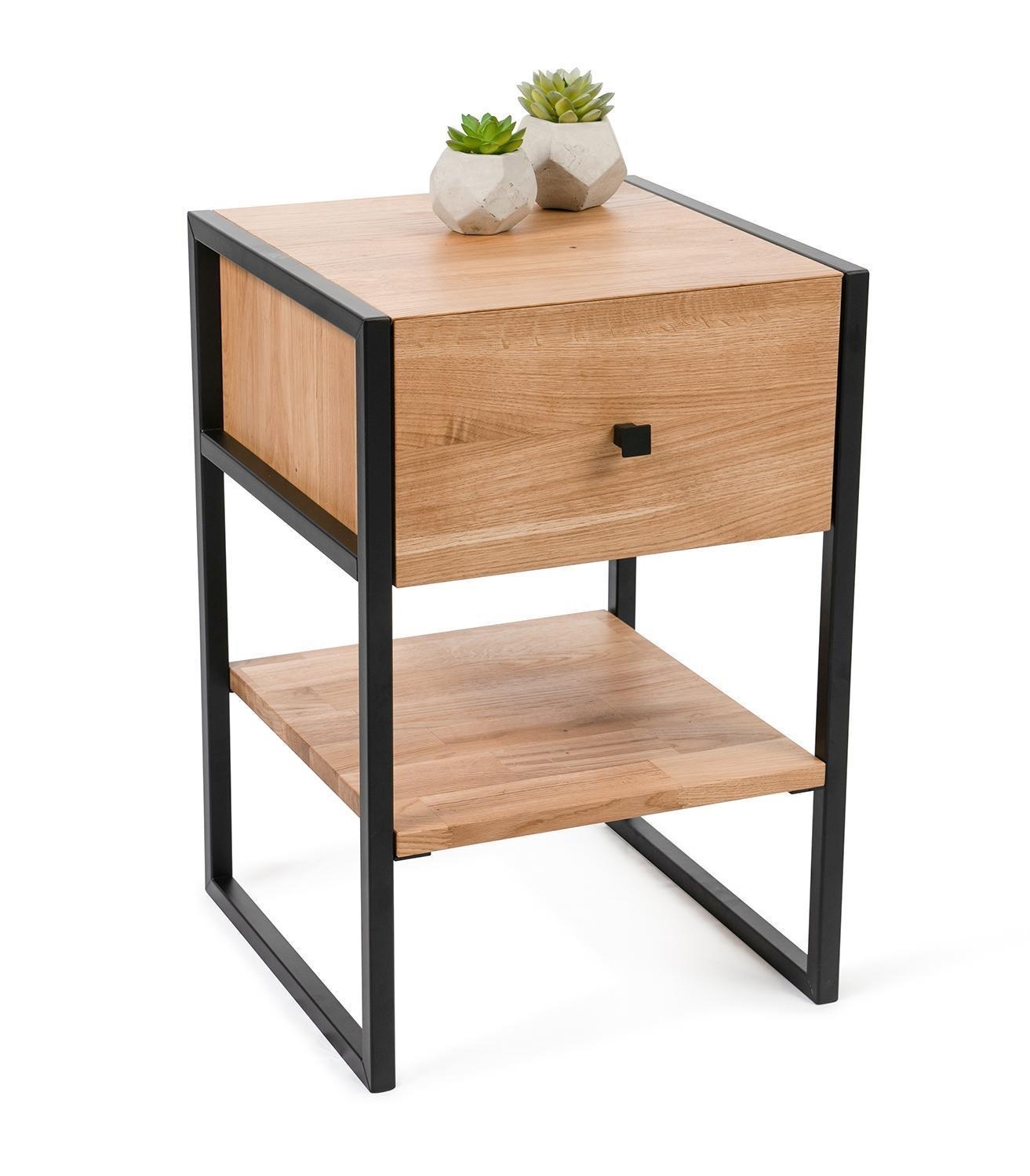 40 x 40 cm - Braun - Schwarz - Metallgestell - Wildeiche massiv - mit Schublade