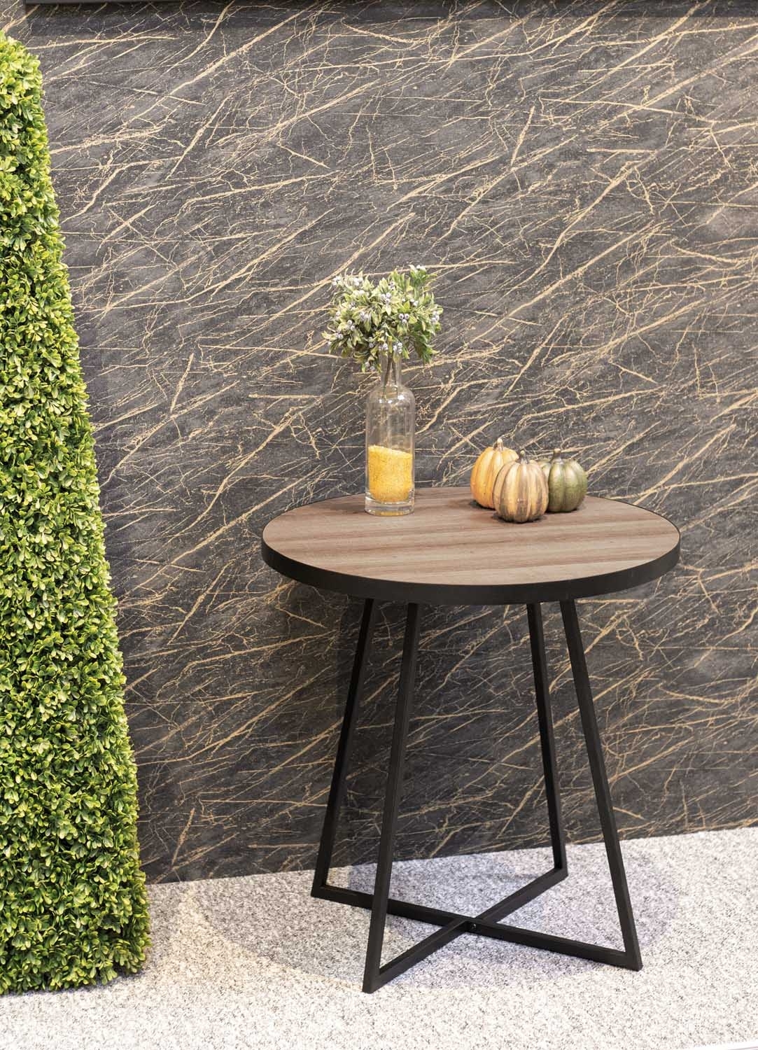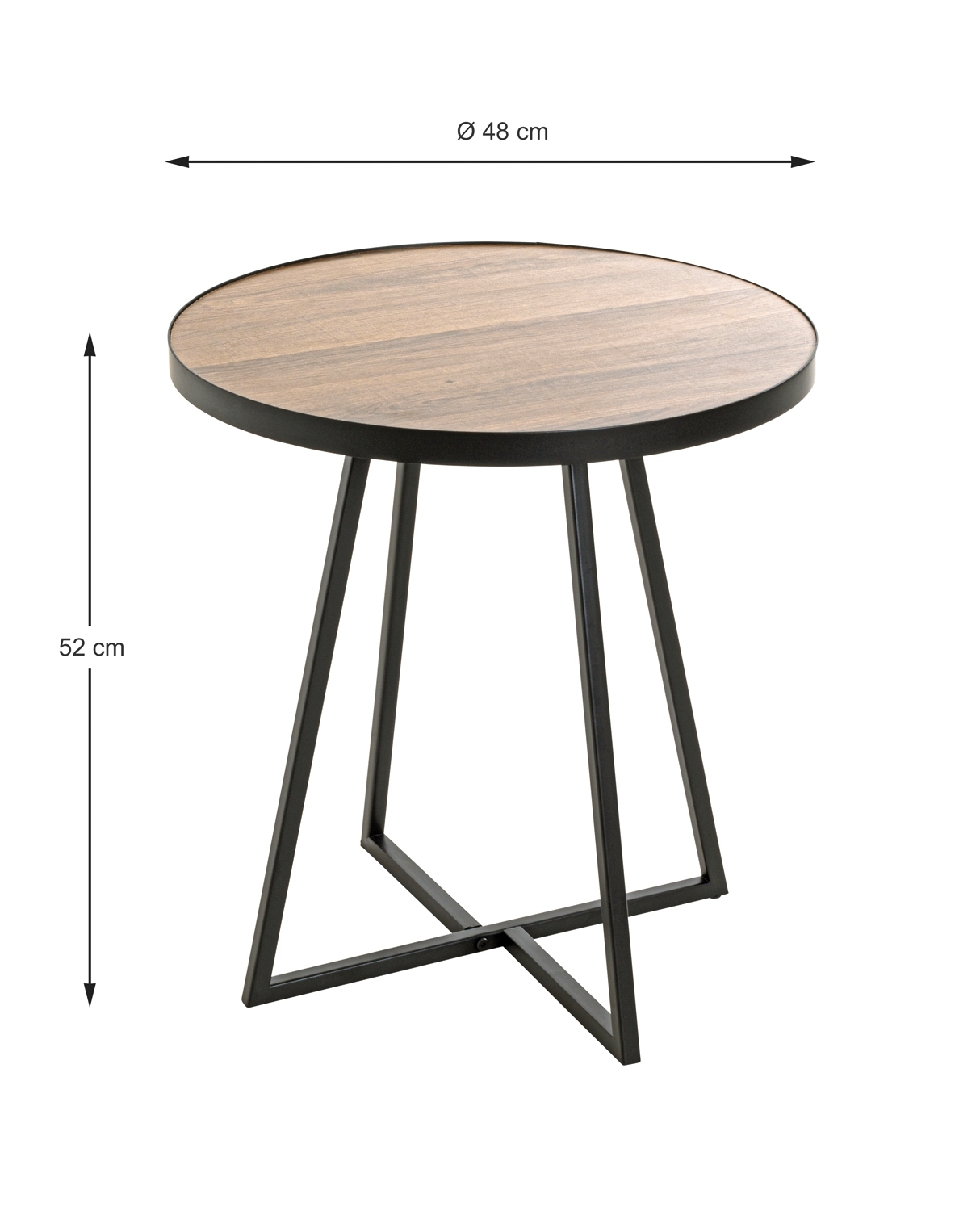 Eiche Dekor - Schwarz - Ø 48 cm - MDF - Metall - lackiert