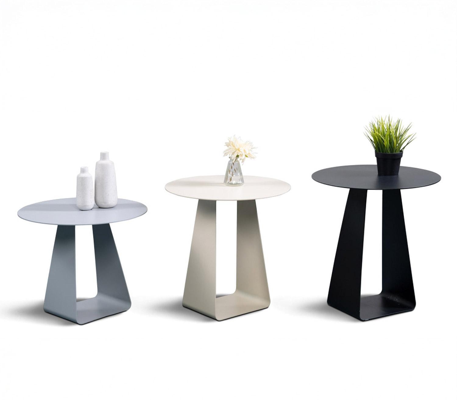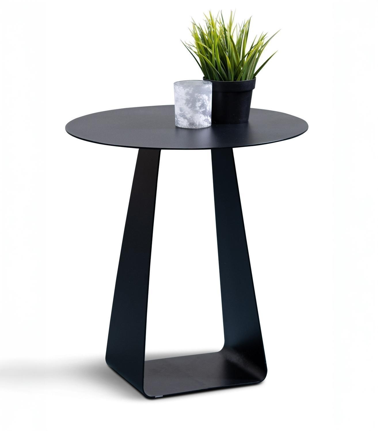 Der Beistelltisch FENATO ist aus Metall in Schwarz gefertigt und mit einer pulverbeschichteten Oberflächenbehandlung versehen. Mit einem Durchmesser von 45 cm und einer Höhe von 50 cm bietet er eine kompakte Abstellfläche, die sich für den Einsatz im Flur, Ess- oder Wohnzimmer eignet. Der Tisch schafft Platz für kleinere Gegenstände wie Zeitschriften oder Fernbedienungen und lässt sich flexibel in verschiedene Wohnbereiche integrieren.