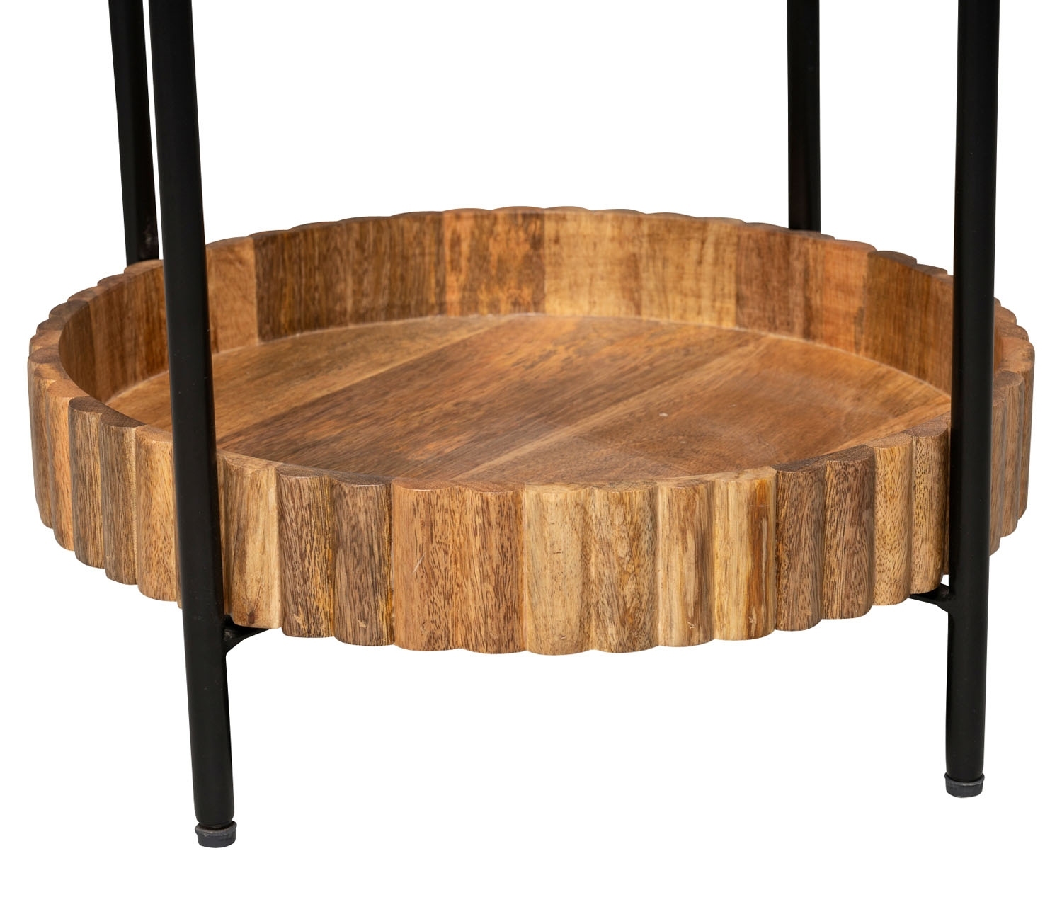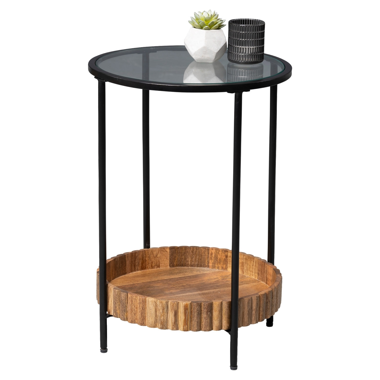 Ø 44 cm - Braun - Schwarz - Glas - Mangoholz massiv - Metallgestell - mit Ablage