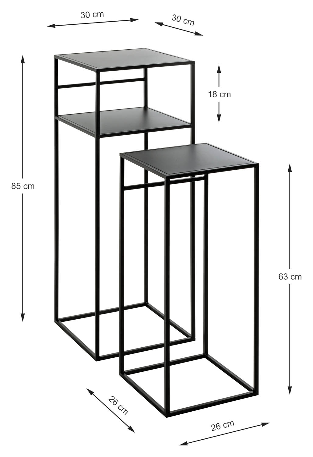 1 größer Beistelltisch: B 30 cm, H 85 cm, T 30 cm