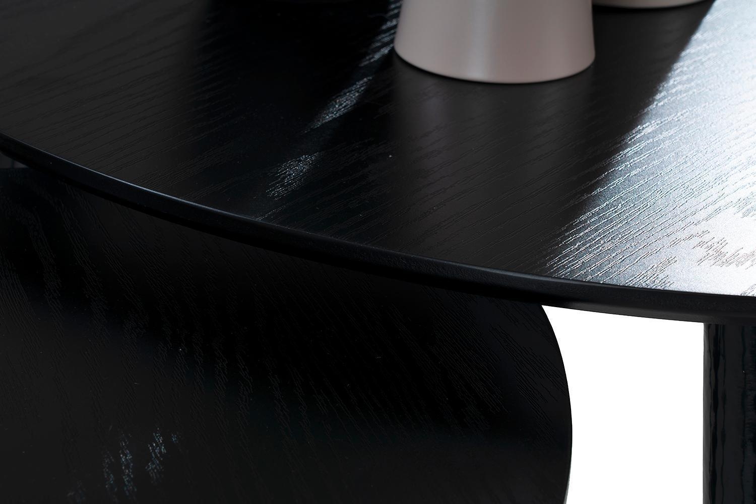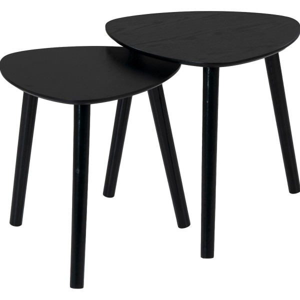 Das Beistelltisch-Set ZURI besteht aus zwei Tischen in Schwarz matt. Es handelt sich um ein zweiteiliges Set in zwei verschiedenen Größen. Die Tische verfügen über eine besondere Form.