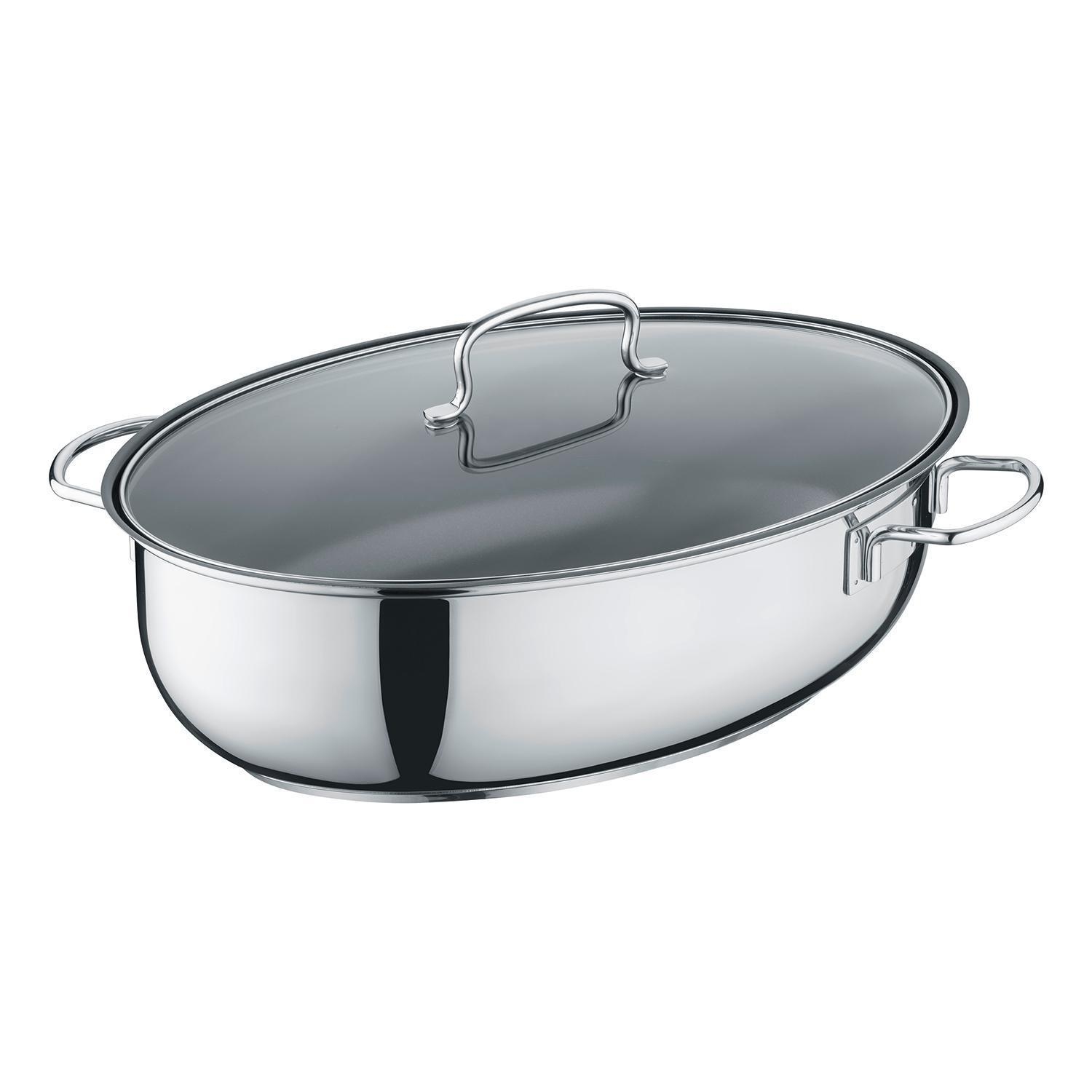38 x 25,5 cm - Edelstahl - Antihaftversiegelung - mit Glasdeckel