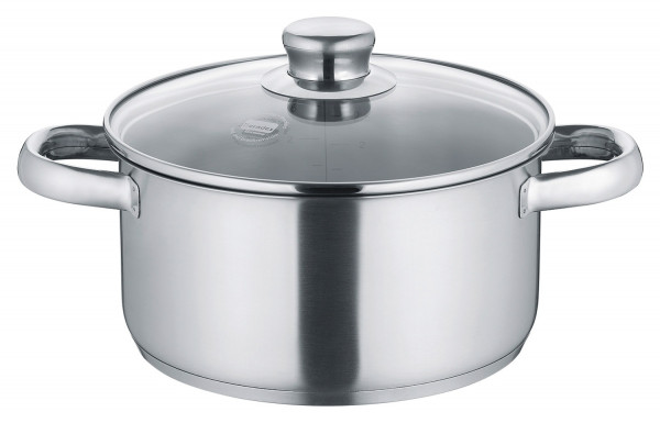 - Bratentopf aus Edelstahl 18/10 mit Glasdeckel