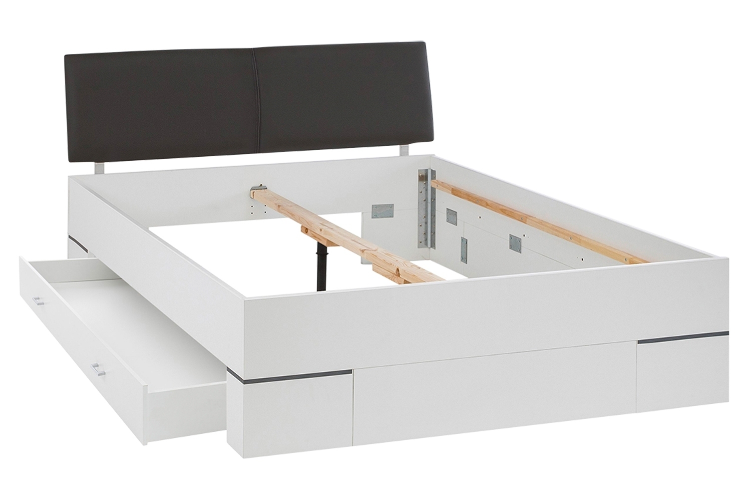 Weiß - Anthrazit - 140 x 200 cm - mit Bettkasten