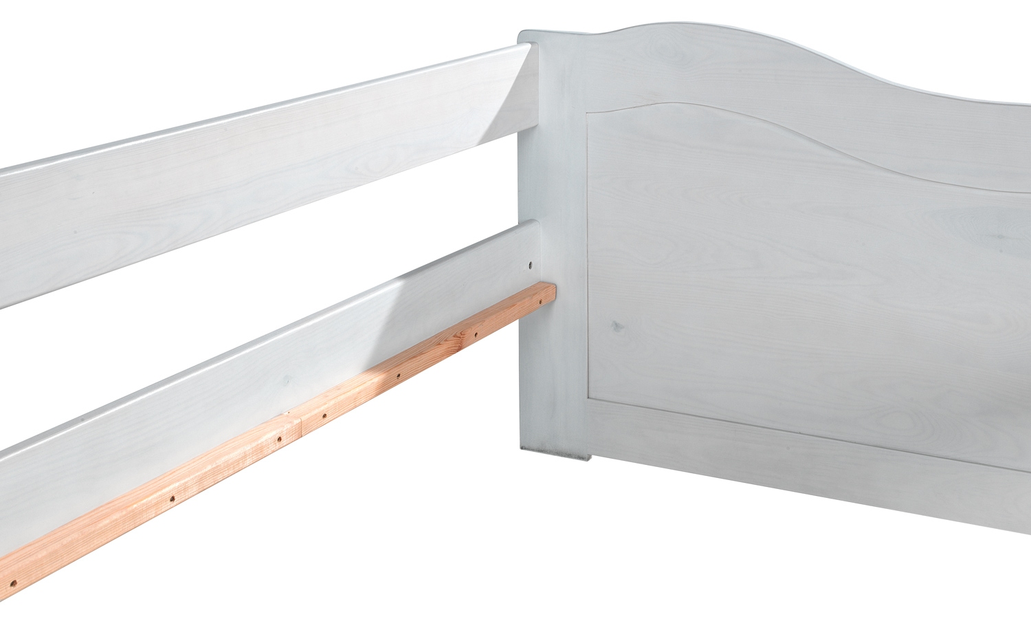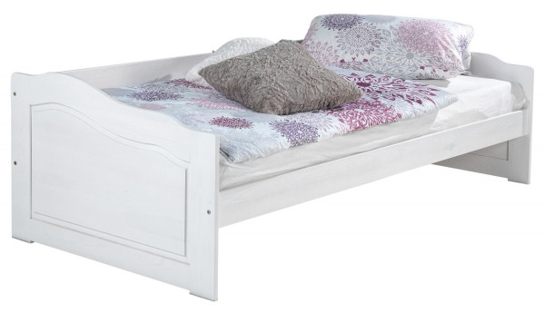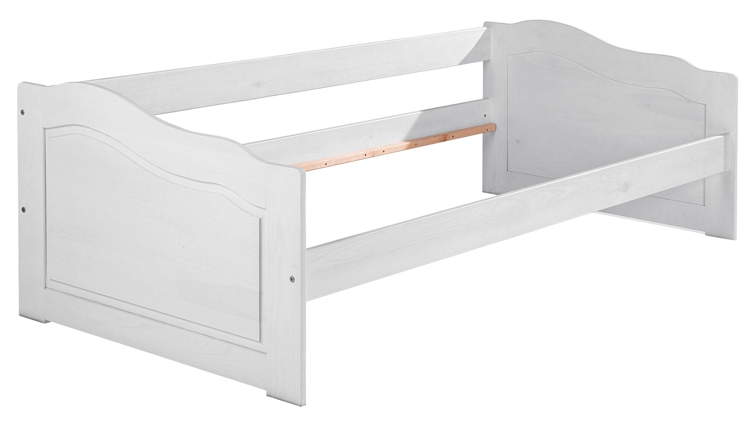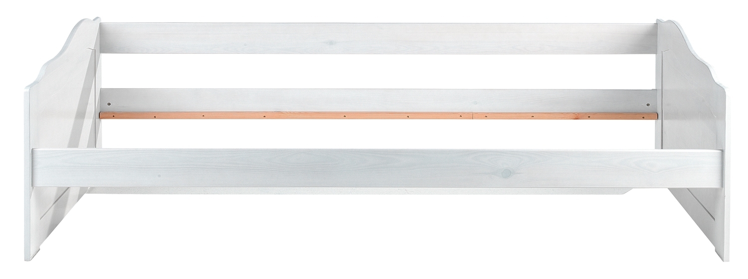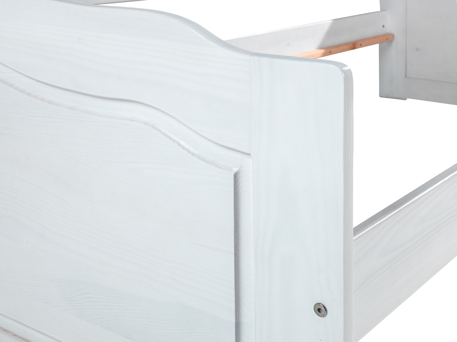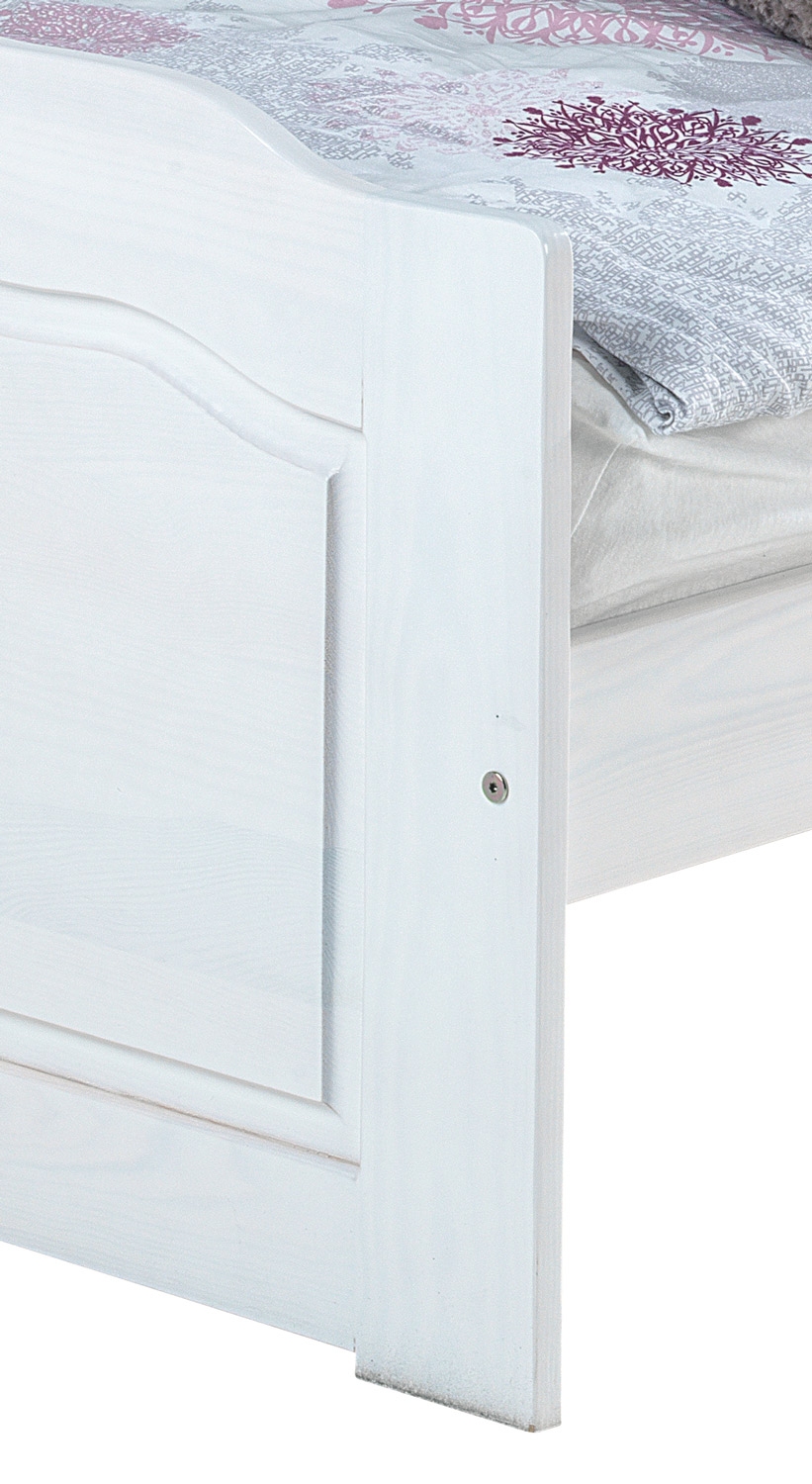 Das Home4You Bettgestell in strahlendem Weiß bietet mit einer Liegefläche von 90 x 200 cm nicht nur hochwertige Verarbeitung, sondern auch ein zeitloses Design. Hergestellt aus massiver Kiefer, fungiert es ideal als Gästebett und verleiht jedem Raum einen frischen und einladenden Charakter.