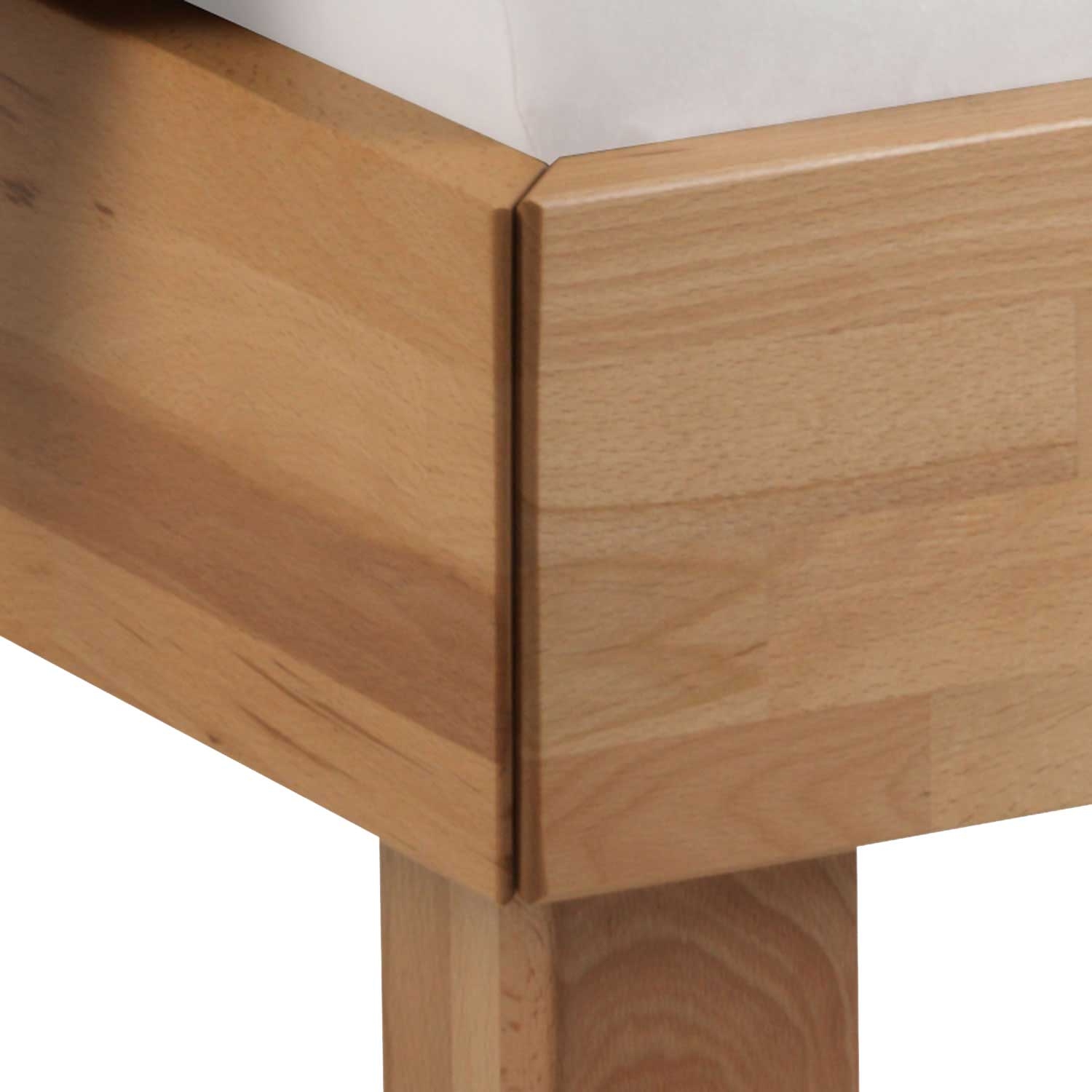Kein Schnickschnack, Schnörkel, Firlefanz, sondern ein schlichtes Bettgestell aus Massivholz. Das Bett ist so einfach wie möglich und genau richtig so! Kernbuche Massivholz Minimalistisches Design und höchste Qualiät, das waren die Leitsätze bei der Konstruktion unseres Bettgestells. So ist dieses Bett reduziert auf das Wesentliche: Es bildet den Rahmen für Ihre Matratze - so schlicht und zeitlos, dass es nie aus der Mode kommt. Dabei sieht man dem Modell seine gute Qualität an: Gefertigt aus besonders stabilem Massivholz der Kernbuch und hochwertig verarbeitet ist dieses Bett gemacht für die Ewigkeit. Angenehme Maße Hier können Sie sich ausbreiten: Das Einzelbett hat Übergröße, 100x200 cm Liegefläche bieten genügend Platz für aktive Schläfer! Zum Glück braucht macht nicht viel! Schlichtes Design, ausgefeilte Verarbeitung und hochwertige Materialien lassen unser Doppelbett zu einem unserer Topseller werden. Spüren Sie den Unterschied und möbeln Sie Ihre Schlafgemach mal wieder kräftig auf.