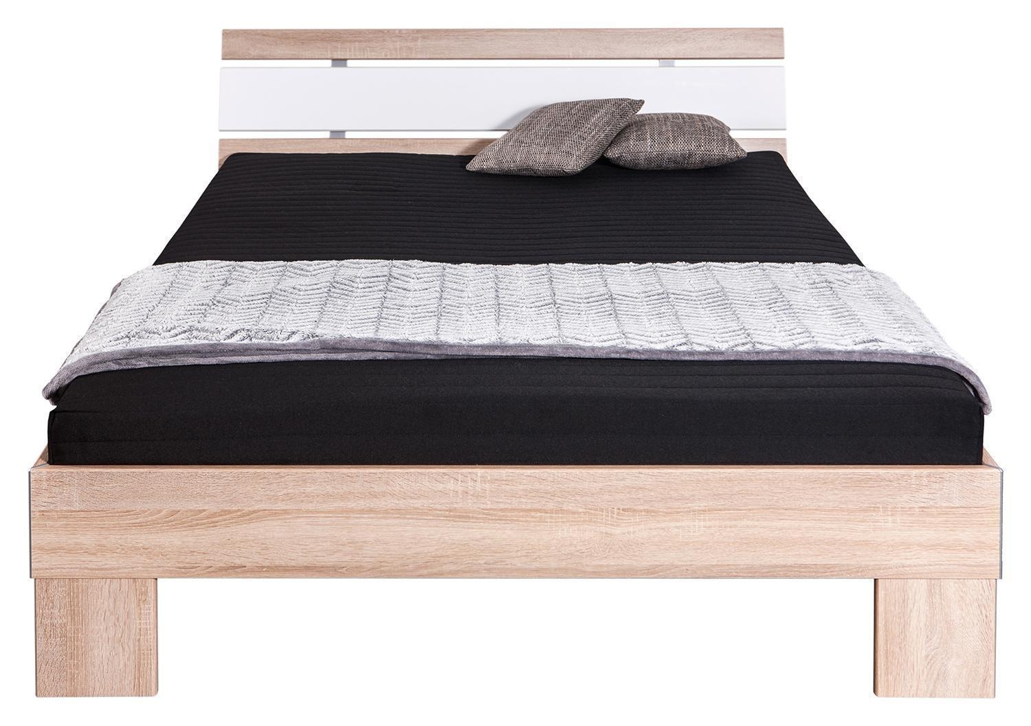 140 x 200 cm - Eiche Sonoma Dekor - Weiß glänzend