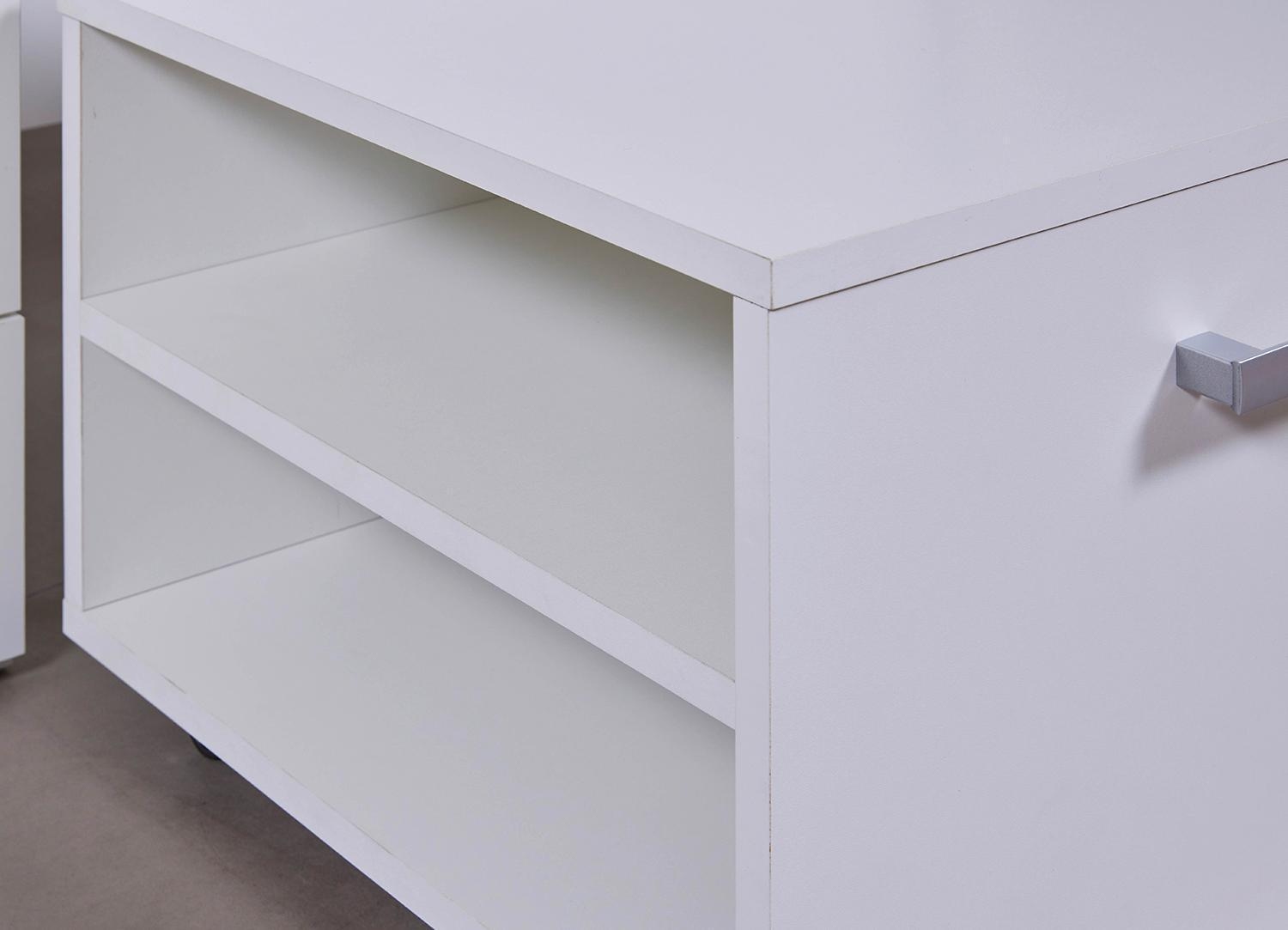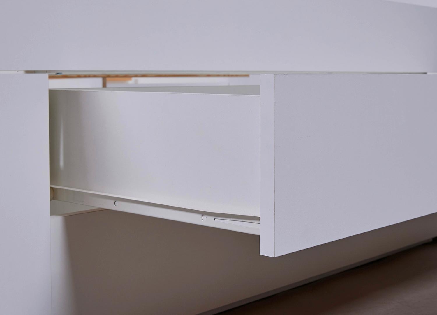 90 x 200 cm - 3 Schubladen - Weiß matt - ausziehbarer Nachttisch