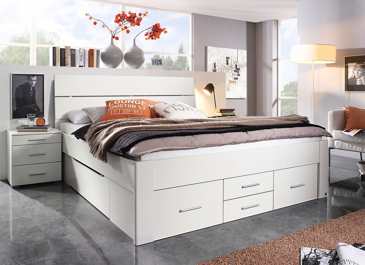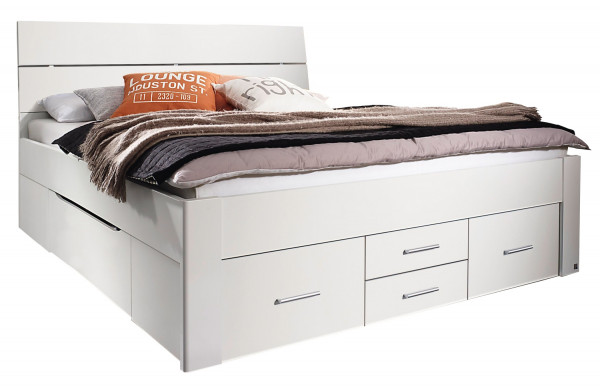 Alpinweiß - 180 x 200 cm - mit 6 Schubladen