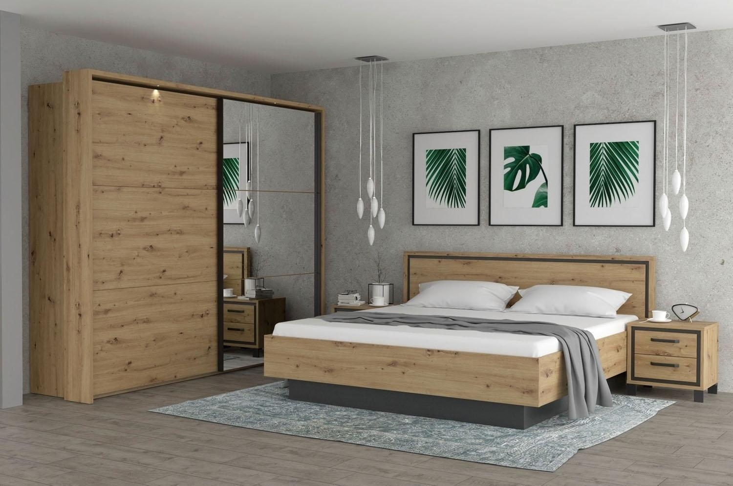 Artisan Eiche Dekor - Schwarz - 180 x 200 cm - mit Kopfteil