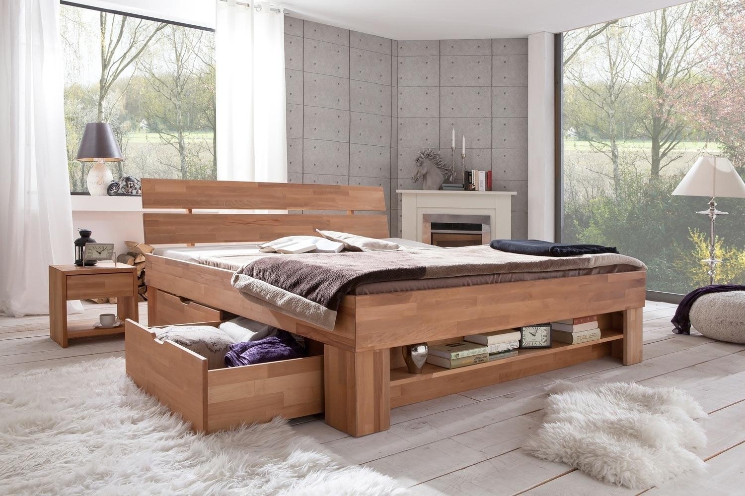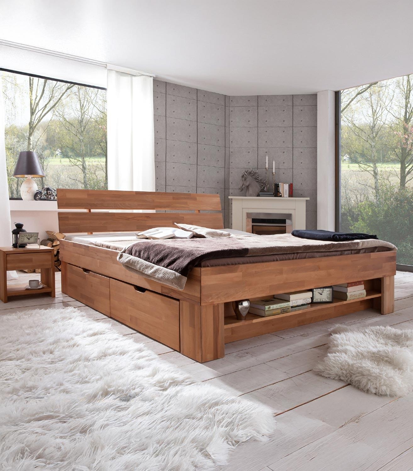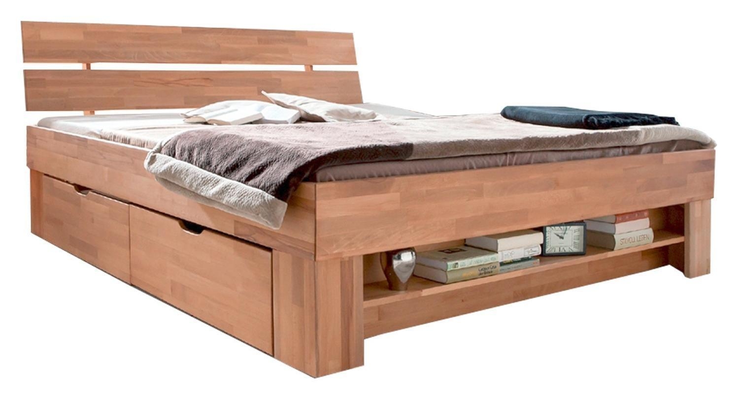 Kernbuche massiv geölt - 140 x 200 cm - mit 4 Schubladen