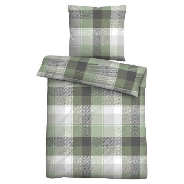 Die Biber-Bettwäsche BELAMIS der Marke biberna präsentiert sich in einem attraktiven Karomuster in Grün. Das Set besteht aus einem Bettbezug und einem Kissenbezug, die beide aus einer Mischung von Baumwolle und Polyester gefertigt sind. Die praktische Verschlussart mit Reißverschluss erleichtert das Beziehen und Abziehen der Bettwäsche. Der Bettbezug hat eine großzügige Größe von 135 x 200 cm, während der Kissenbezug eine Größe von 80 x 80 cm aufweist. Die Materialzusammensetzung beträgt 60 % Baumwolle und 40 % Polyester.