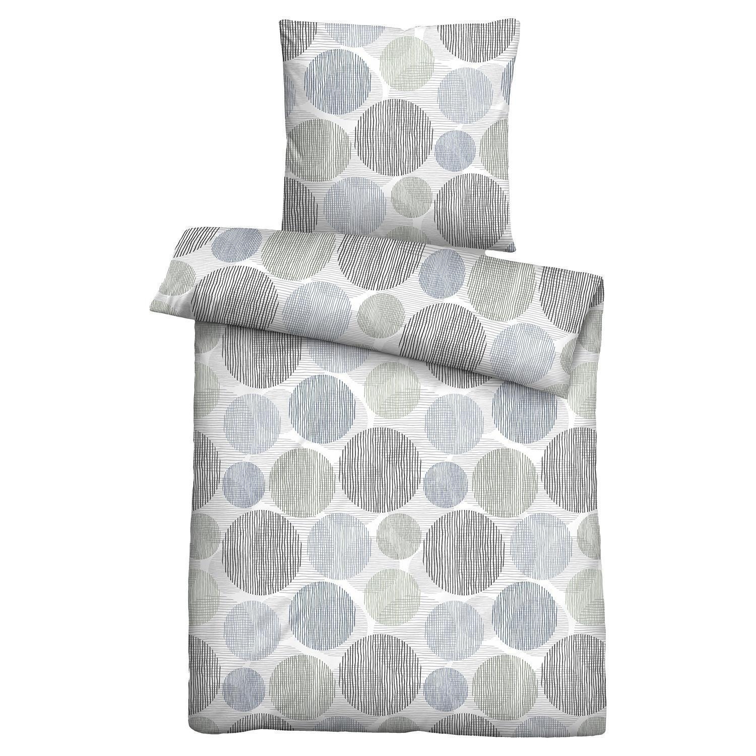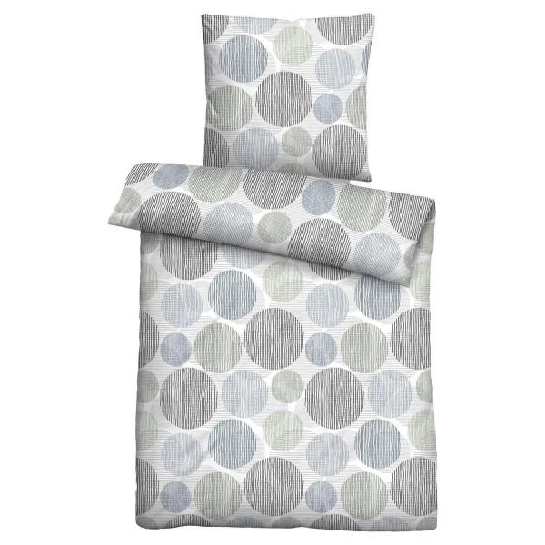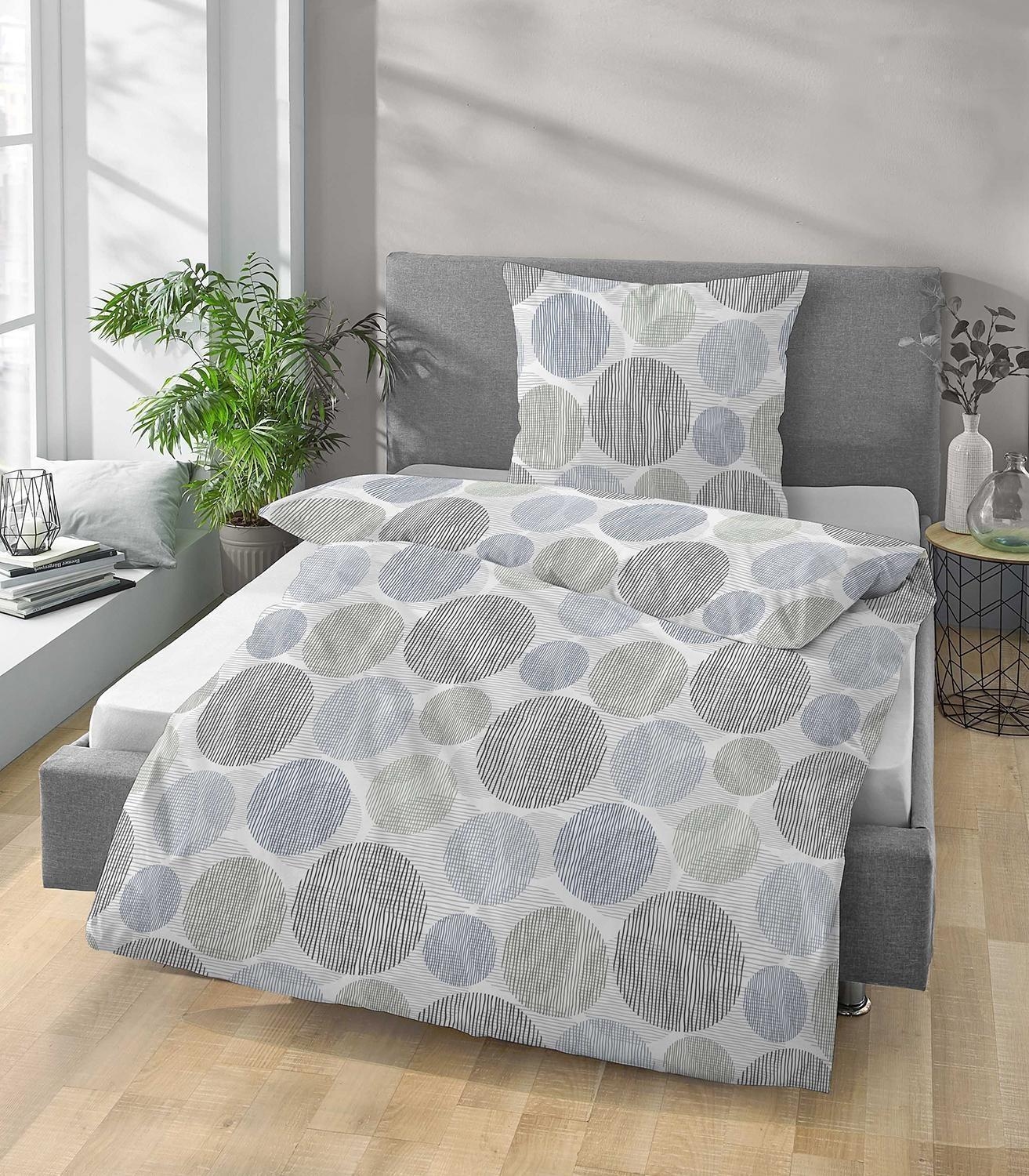 Die Mikrofaser-Bettwäsche BANYA von biberna präsentiert sich in der Farbe Grau mit einem dekorativen Kreismuster. Sie überzeugt durch ihre angenehm weiche Qualität und ist mit einem praktischen Reißverschluss ausgestattet, der das Beziehen besonders einfach macht – ideal für komfortables und pflegeleichtes Wohnen.