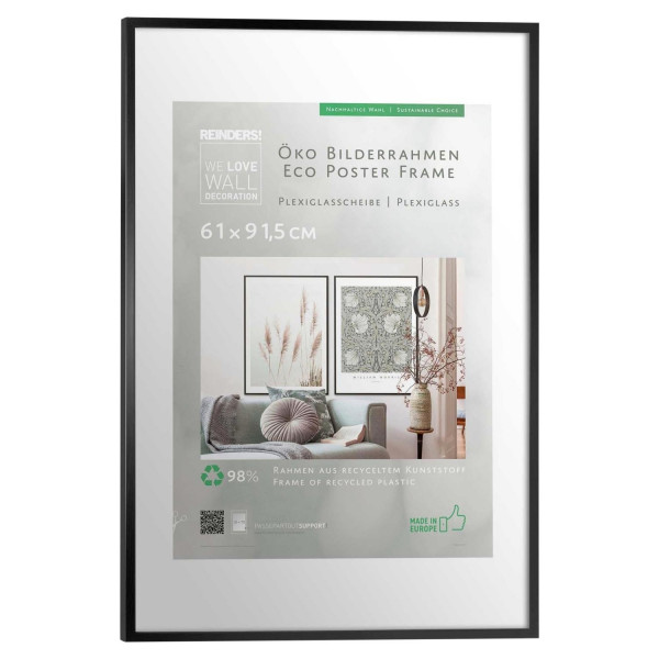 Über die abnehmbare Rückseite können Sie jederzeit schnell und einfach die Motive austauschen. Der Rahmen besteht zu 98 % aus recyceltem Kunststoff.