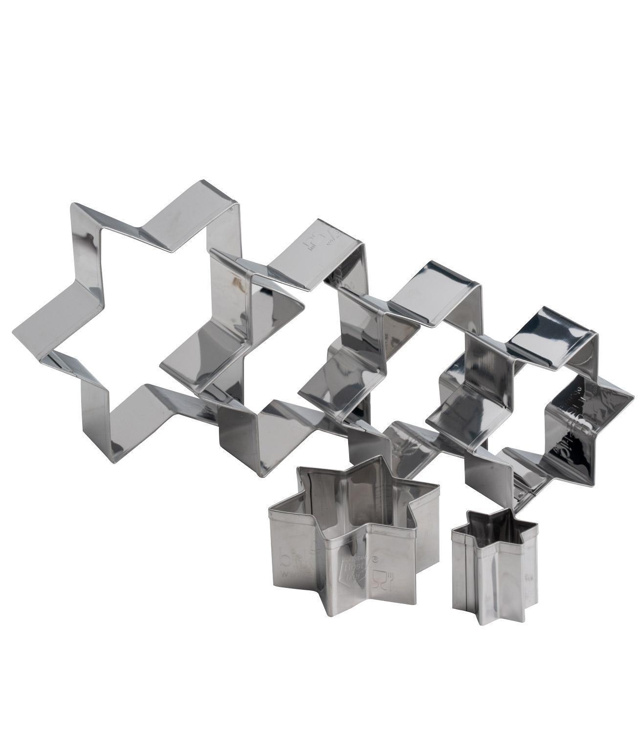 Das Ausstechformen-Set LITTLE CHRISTMAS der Marke Birkmann besteht aus sechs Ausstechformen aus rostbeständigem Edelstahl. Die Formen sind in Sternoptik gestaltet und eignen sich zum Ausstechen für Teile für einen Tannenbaum. Das polierte Material ist frei von scharfen Kanten und sorgt für eine sichere Handhabung. Zudem sind die Ausstechformen spülmaschinengeeignet und dadurch leicht zu reinigen.
