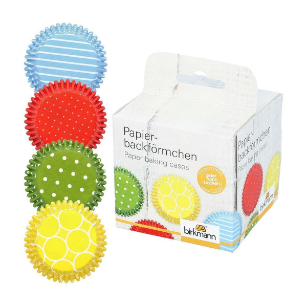 Die Papierbackförmchen EASY BAKING der Marke Birkmann bestehen aus mehrfarbigem Papier. Insgesamt sind 100 Stück in einer wiederverschließbaren Box enthalten. Die Förmchen sind hitzebeständig bis 200 °C und lassen sich leicht vom Backgut ablösen. Jeder Förmchen hat einen Durchmesser von 7 cm und eine Höhe von 3 cm.