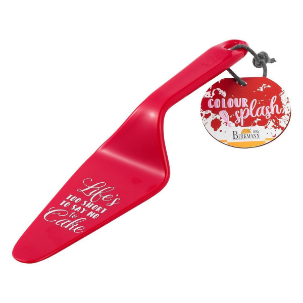 Der Tortenheber COLOUR KITCHEN von Birkmann besteht aus Kunststoff in der Farbe Rot. Er ist mit einem Schriftzug verziert und verfügt über eine Öse zum Aufhängen. Der Tortenheber ist spülmaschinengeeignet. Die Länge beträgt 26 cm, die Breite 6 cm.