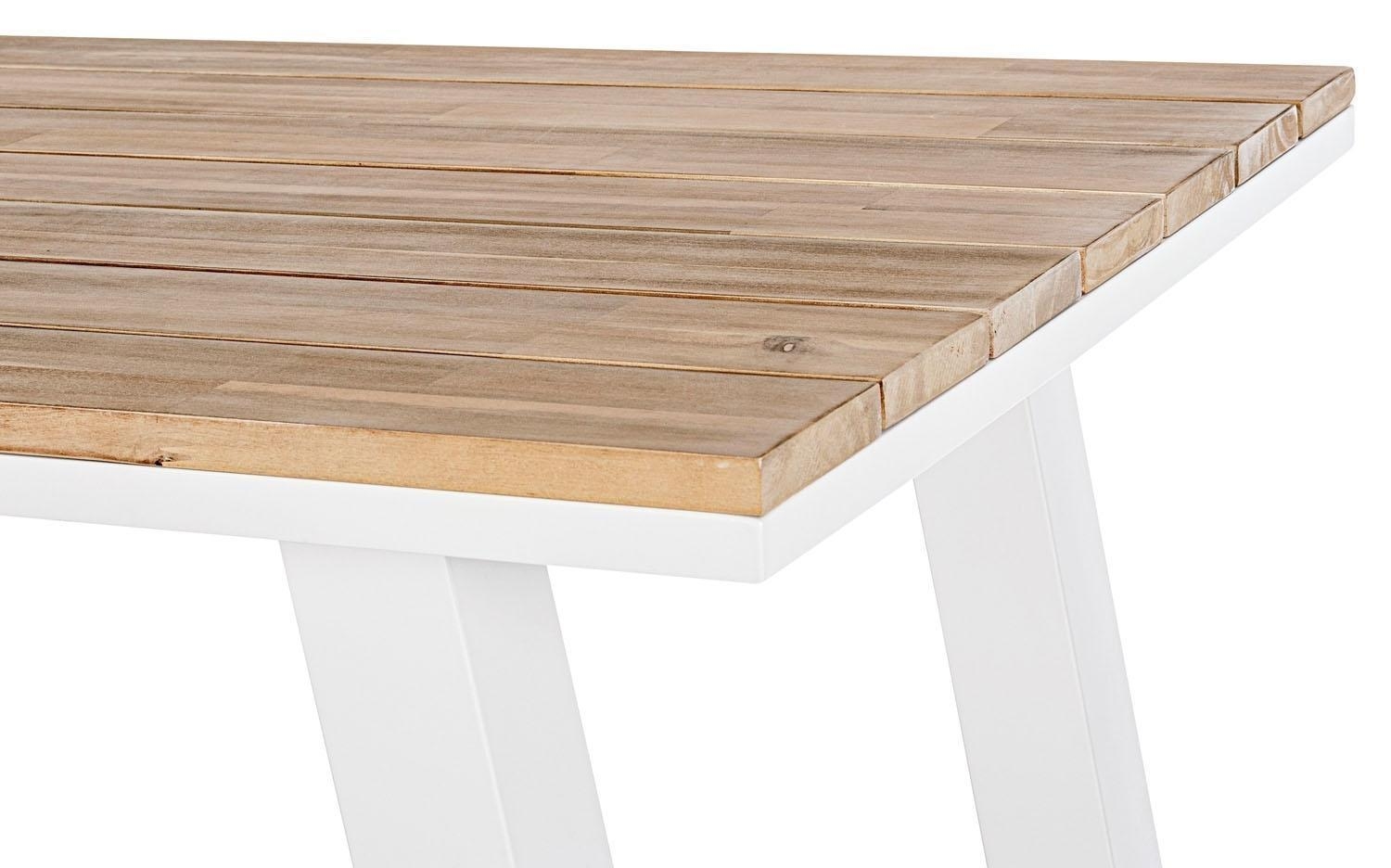 Die Tischplatte besteht aus lackiertem Aluminium in schöner Holzoptik. Das Gestell ist aus pulverbeschichtetem Aluminium in weiß. Gartenmöbel aus Aluminium sind besonders pflegeleicht. Aluminium verbindet sehr geringes Gewicht mit Langlebigkeit und hoher Resistenz gegen Witterungseinflüsse. Gartenmöbel aus dem Leichtmetall Aluminium sind aufgrund ihres geringen Gewichts leicht zu handhaben. Das rostfreie Aluminium erhält durch die hochwertige Beschichtung ein edles Oberflächenfinish, welches es unempfindlich gegen Witterungseinflüsse und absolut pflegeleicht macht.